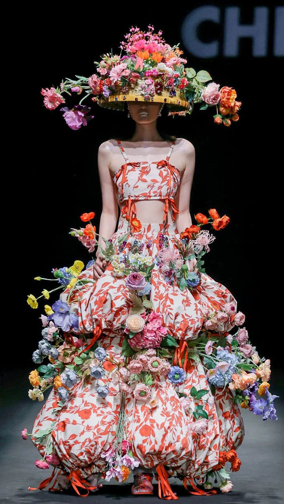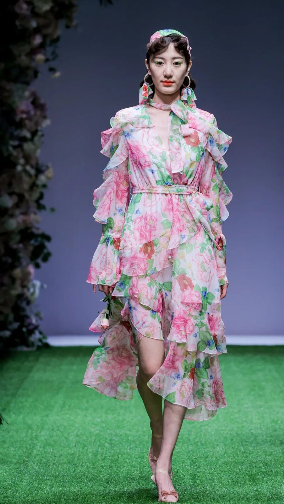 虽然各类别植物早已是品牌们的图案灵感,但是在后疫情时代,美丽植物花卉带来的甜蜜生机更触动内心。DAMOWANG、CHENG CHENG、FLOWERNINE、L’arôme和白鹿语的鲜花纹样是扑面而来的明媚;LIN STUDIO的些许点缀增添整体造型的趣味;YOUG X 、JIWENBO PRIVE、旗艺利用植卉打造氛围感。设计师们完全把握住植物图案的灵活性,对其进行解构重组,与服装色彩或廓形相巧妙结合,呈现出鲜明的设计风格。