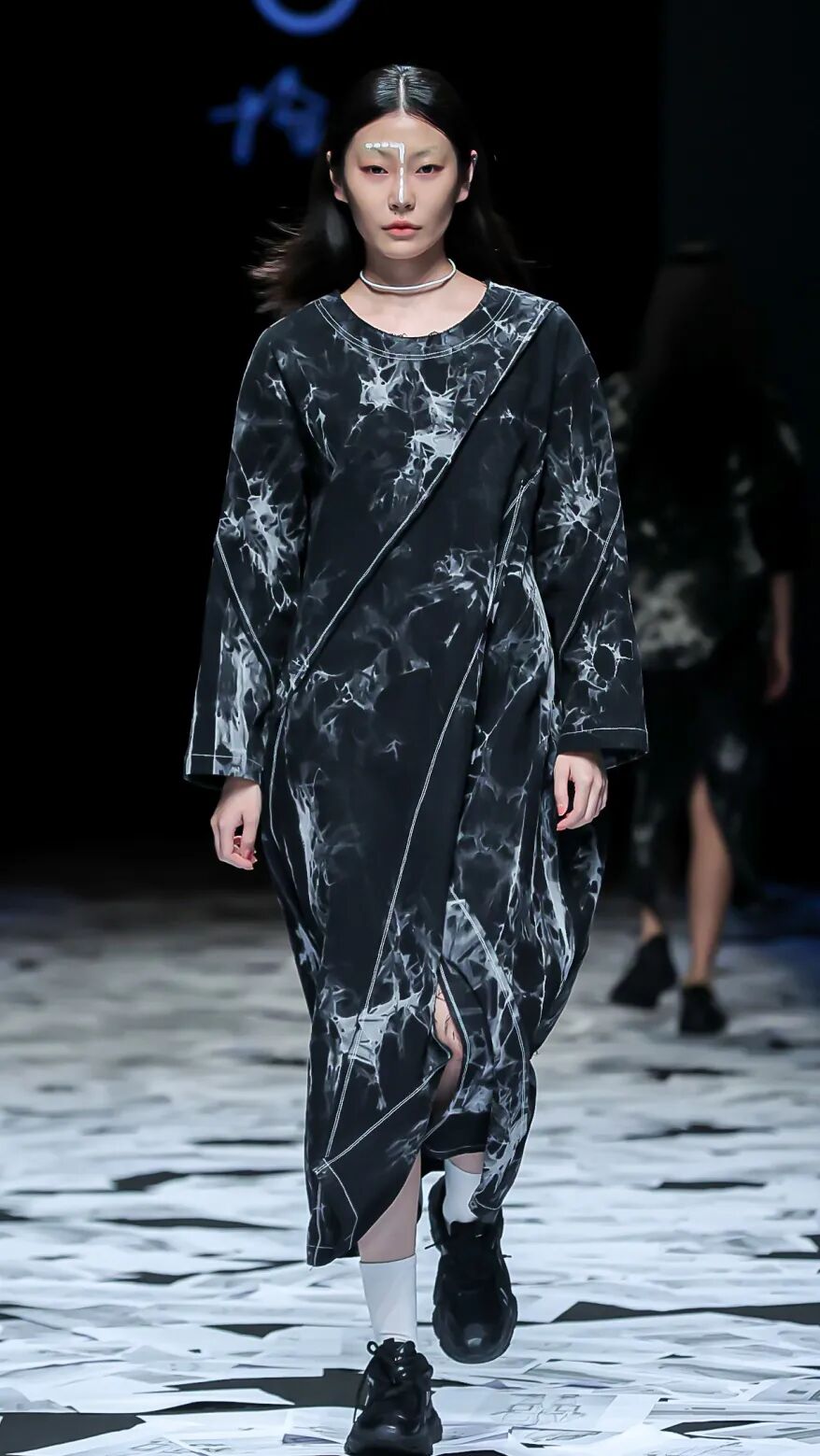 抽象本身就具有魔力,非具象的图案能够千姿百态的样貌延展开来。YI’S STUDIO、D. MARTINA QUEEN的随性肌理;今日青年的光影质感;劲霸男装、捡子、兼持的水墨晕染;NILDET、迪丝嫚苓的新浪潮未来主义;LIQINGWEI的油画色彩理念······这种边界无限、随机生成的感觉受到Z时代消费群体的青睐。
