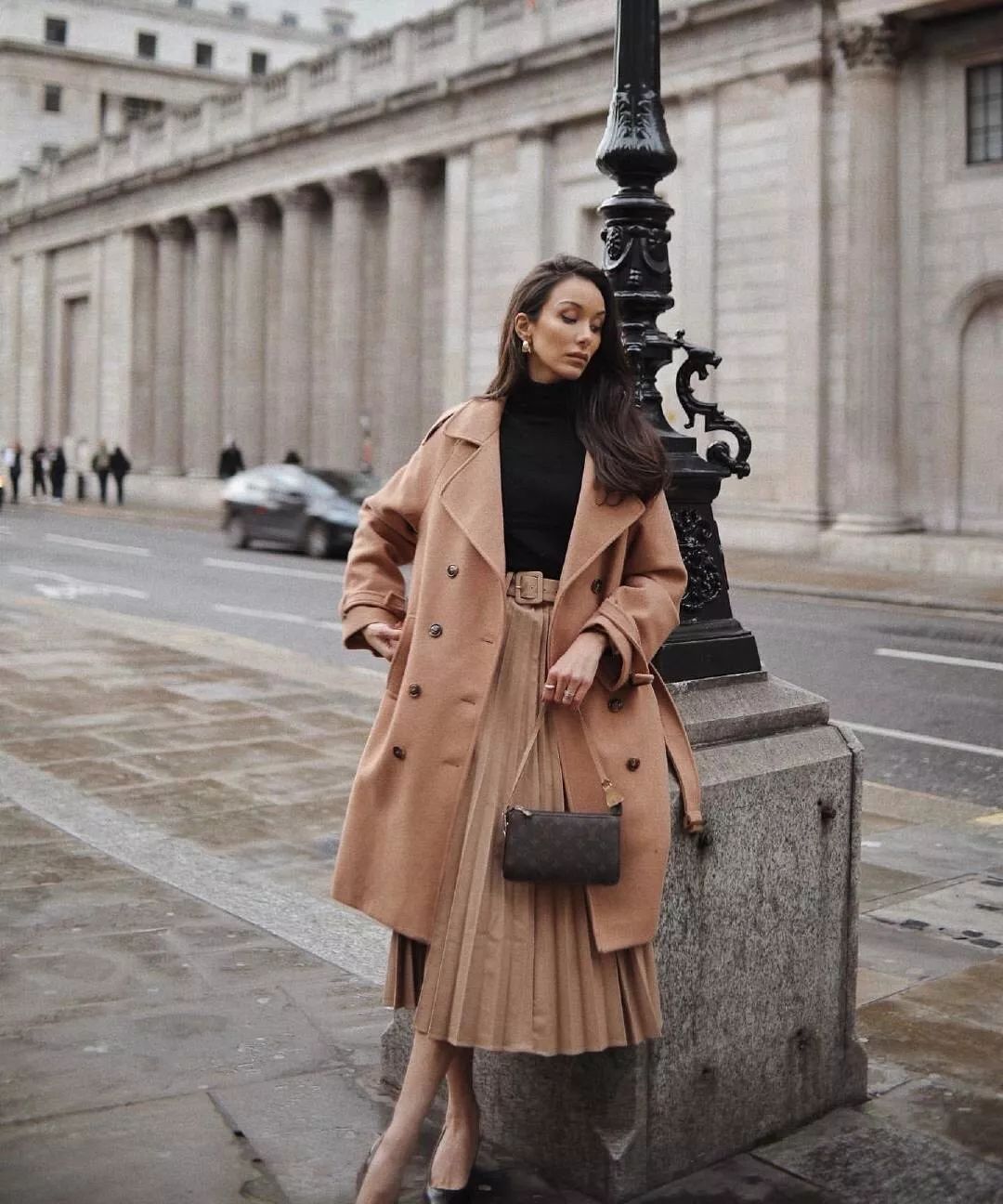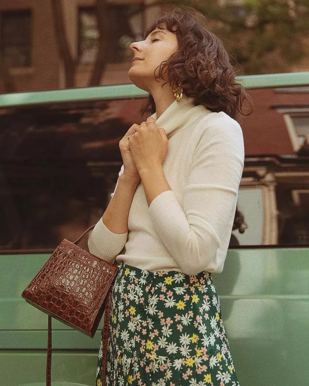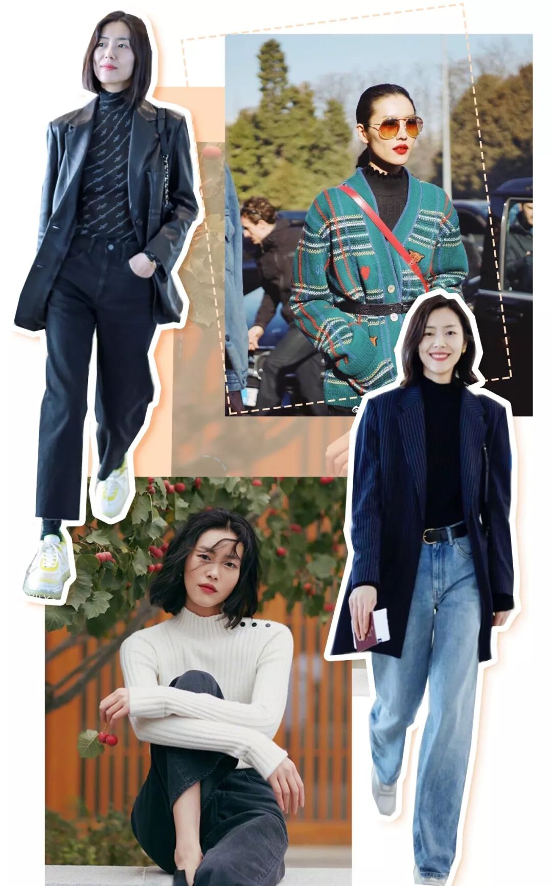 这种叠穿搭配是眼下时髦星人的最爱,复古又极富腔调。打底的高领衫一般选择修身贴颈的款式,更能穿出韵味来。