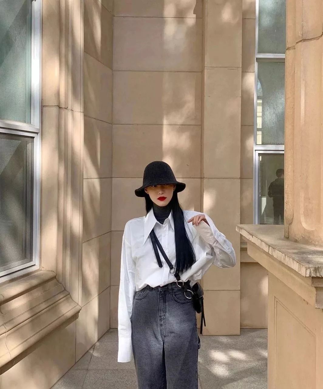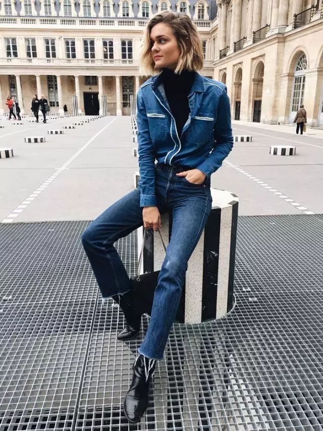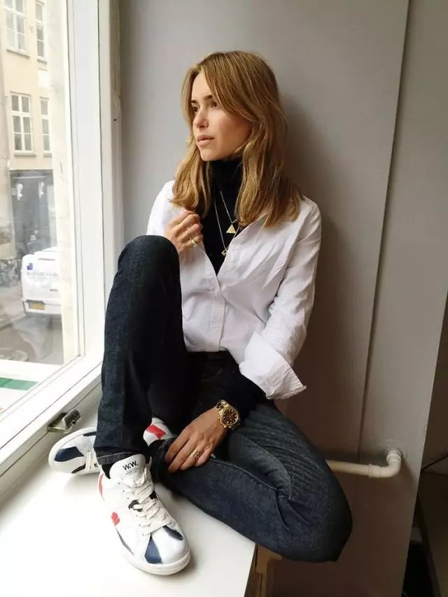 衬衫除了最简约的白衬衫外,还可以用牛仔衬衫、条纹衬衫or蓝衬衫等经典款来与高领衫叠穿。
