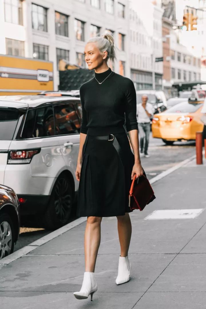 高领衫还有个特殊功能就是不费脑细胞就能穿成法式女郎,高领衫配各种半身裙是最好的归宿,丝毫不挑身材。塞进高腰裙里重塑比例,这招属于最基本技巧。