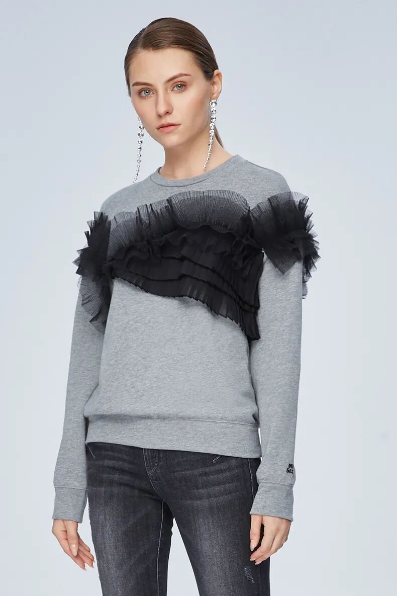 此类卫衣设计风格更偏新女性气质方向,更为华丽的单品更新了前几季的简约款型,将卫衣单品与时尚女装的设计元素相结合,精致华丽的装饰使中性的卫衣单品变得更有女性魅力,这类卫衣单品令人耳目一新。