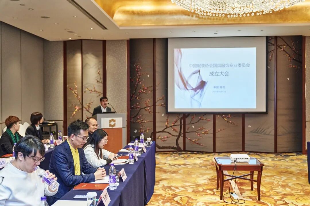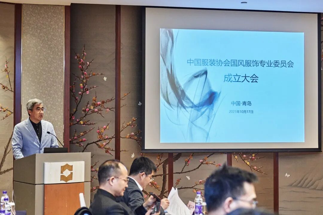 10月17日,“中国服装协会国风服饰专业委员会成立大会”在青岛举行。中国服装协会专职副会长杨晓东、辽宁省纺织服装协会会长王翀、山东省纺织服装行业协会副会长王淼,以及来自全国的三十多名优秀国风服饰品牌代表和相关机构、媒体参加了会议。会议由中国服装协会副秘书长兼产业部主任齐元勋主持。