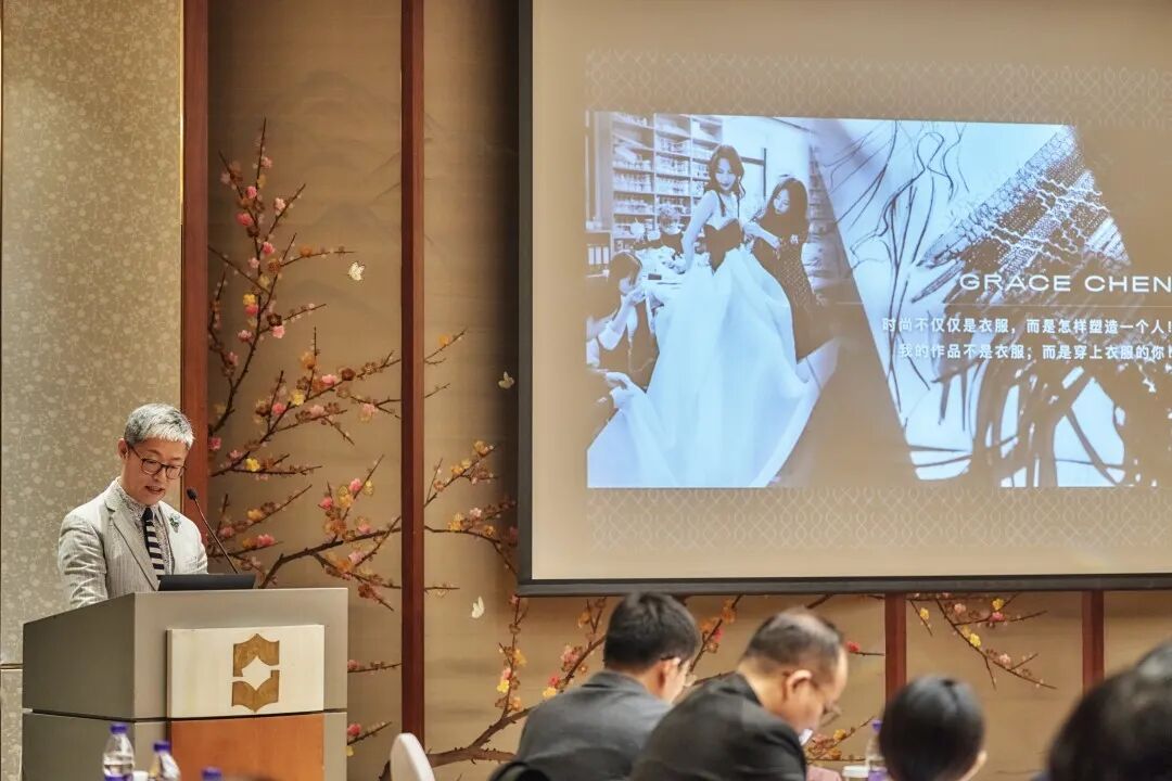 瑰丝陈时装设计(上海)有限公司副总经理周宏毅以“现代中国风,世界新时尚”为主题分享GRACE CHEN品牌创新发展的思考。他介绍说,GRACE CHEN一直以中华文化底蕴为依托,以“静、深、富”为审美哲学,立志于建立现代中国时尚语言、传播具有普世审美意义的东方美学。他认为,以现代语言的精神创造属于当代中国文化的时尚风格,表现当代中国人生活状态和精神追求,是时代给予所有服装人的机遇与使命。