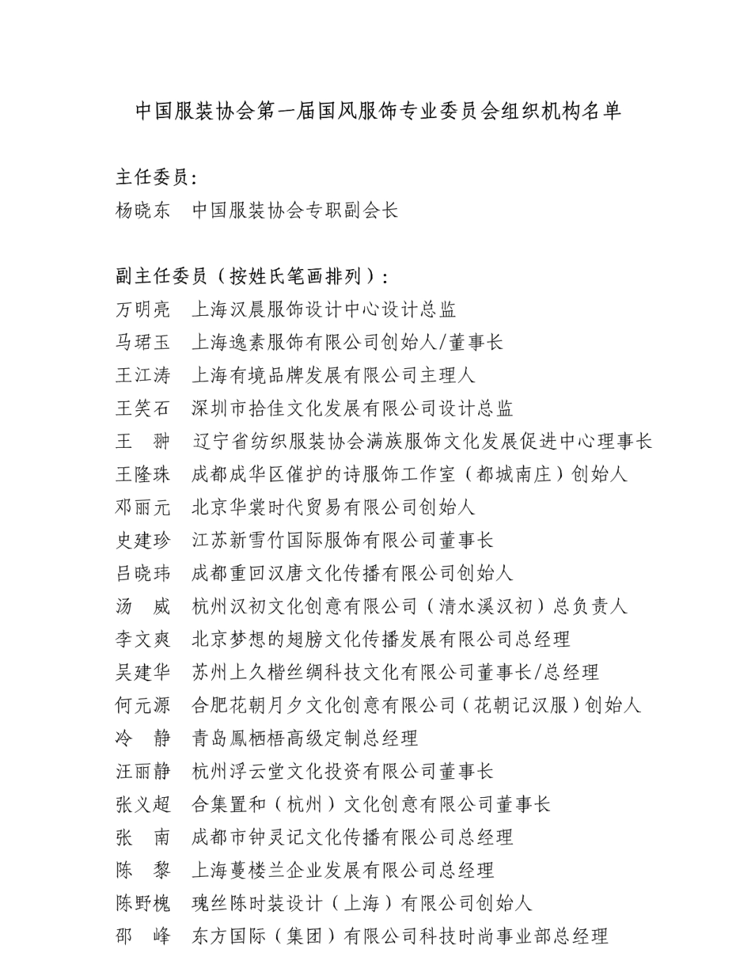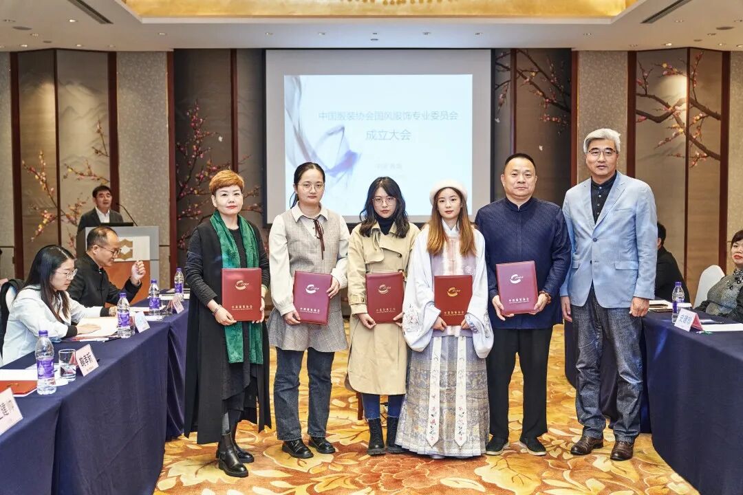 根据民政部关于行业协会下设分支机构设置及换届选举办法的规定,中国服装协会秘书处正式提名聘请中国服装协会第一届国风服饰专业委员会主任委员1名、副主任委员37名、1名秘书长、2名副秘书长,并在本年度理事会上公示、通过、生效,届期五年。会上,中国服装协会专职副会长杨晓东为国风服饰专业委员会副主任委员、秘书长和副秘书长颁发了聘书。