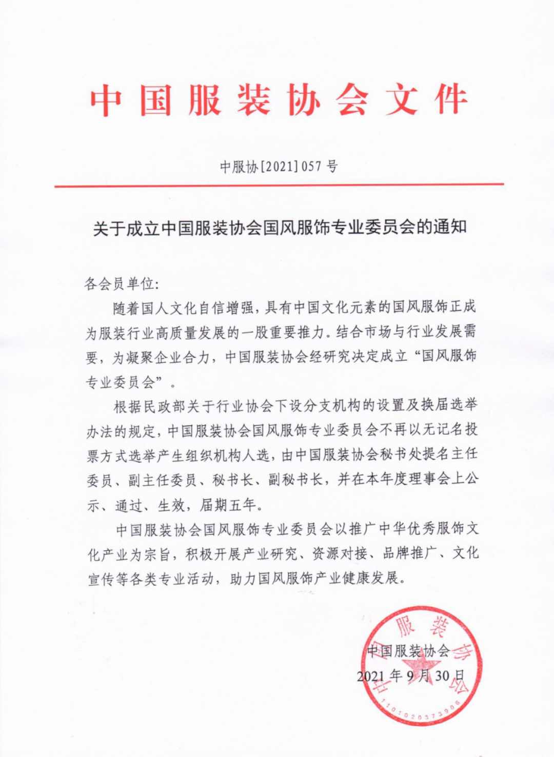 作为重要的文化载体,服装不仅体现着人们的生活态度和精神追求,同时更展示着一个时代的风貌。近年来,随着文化自信不断增强,消费者对中国传统文化的关注与喜爱不断提升,国潮服饰更是成为产业发展的一个重点增长点。为顺应市场发展需求,凝聚行业发展合力,中国服装协会正式成立国风服饰专业委员会。