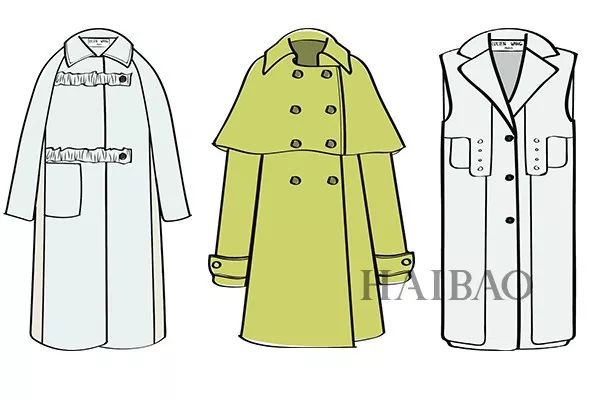 (左)插肩风衣 (中)斗篷风衣 (右)马甲式风衣