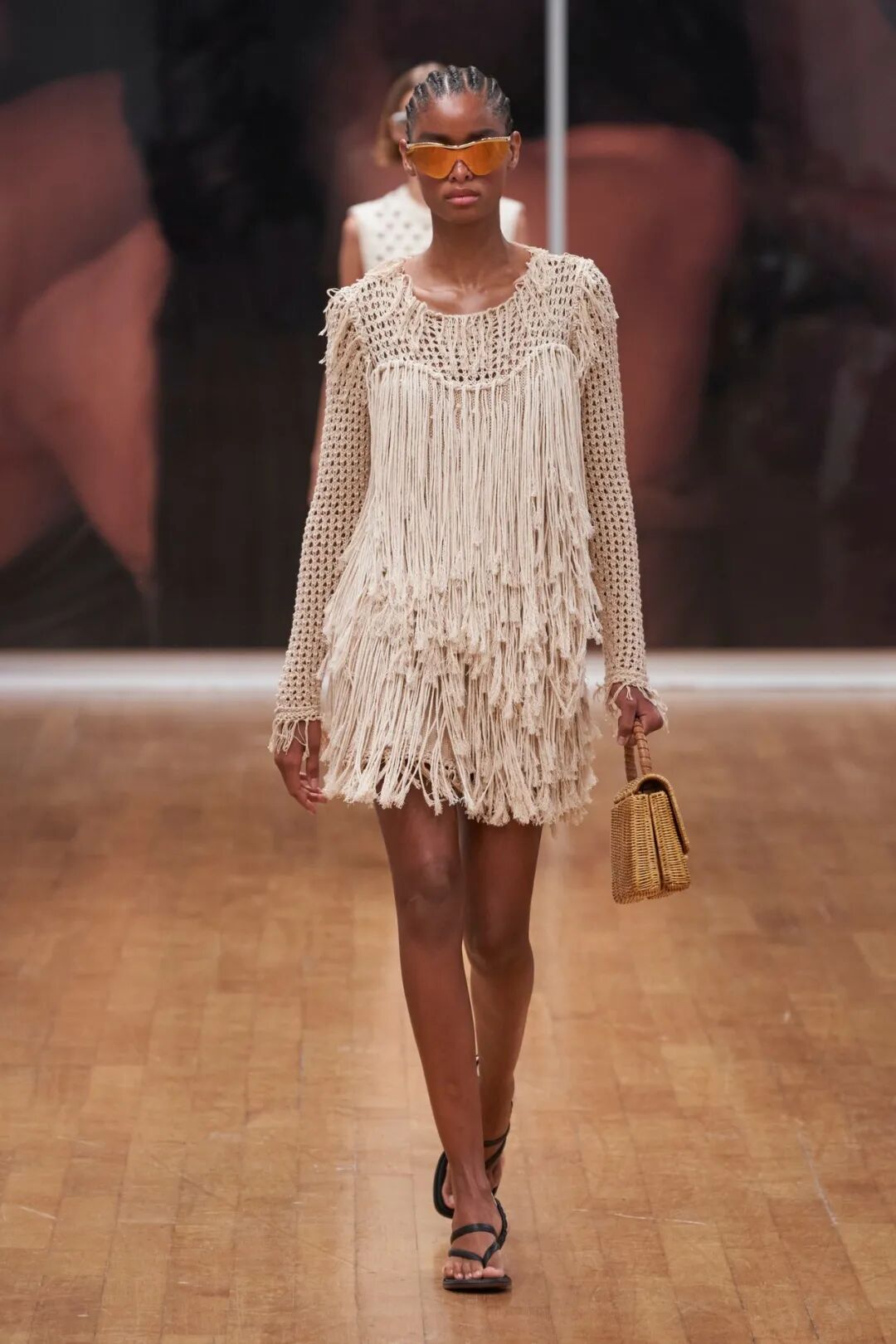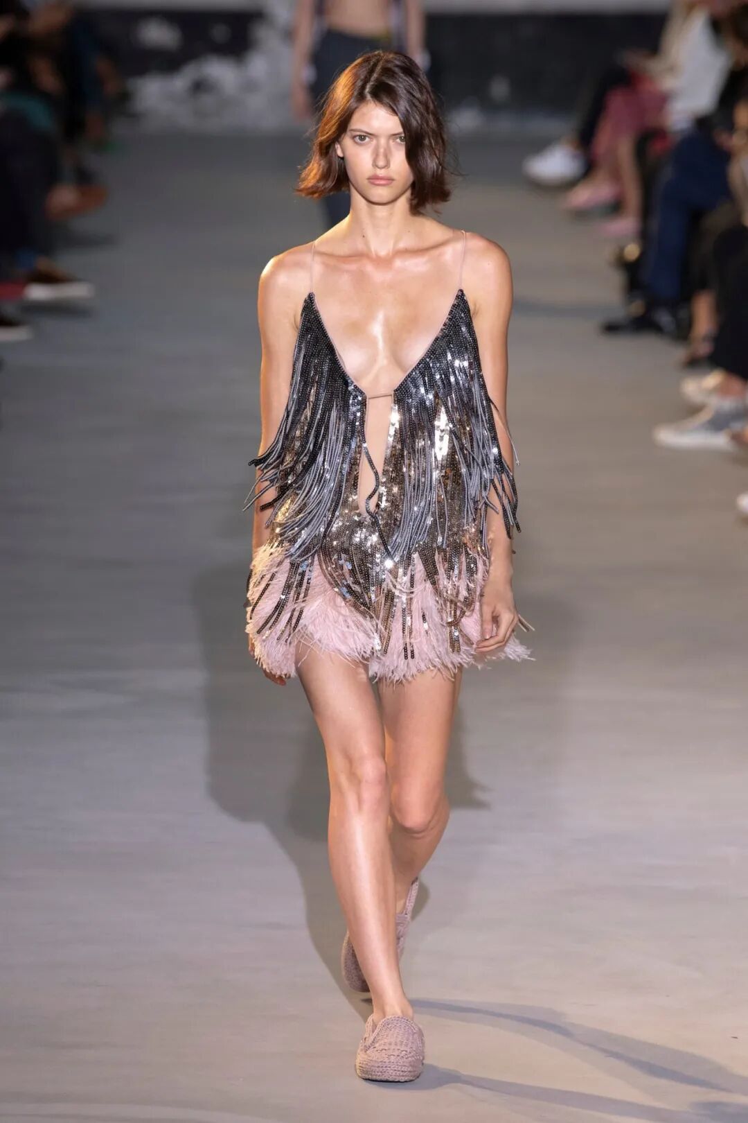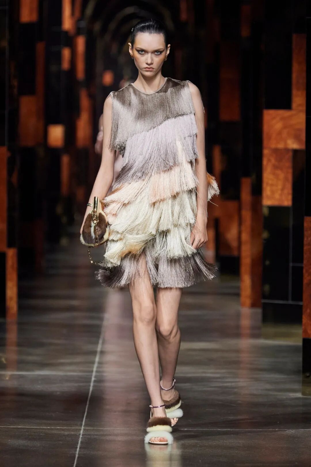 到 20 年代的往返旅行使流苏重新成为下一季的趋势之一。长排亮片对N°21的诠释令人惊讶。