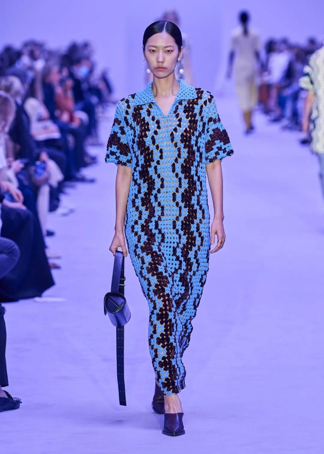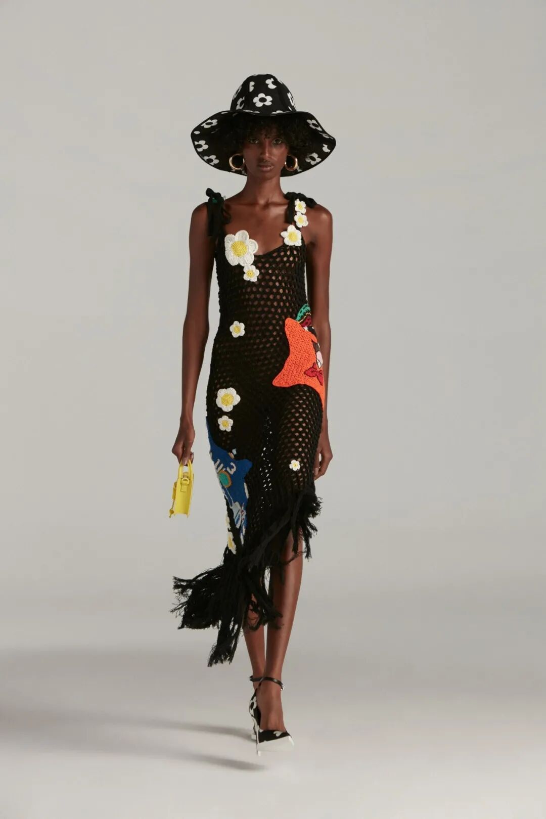 针织在 SS22 季节仍然流行。全新GCDS系列的钩针编织连衣裙采用美人鱼造型,以对比色针织面料为特色。