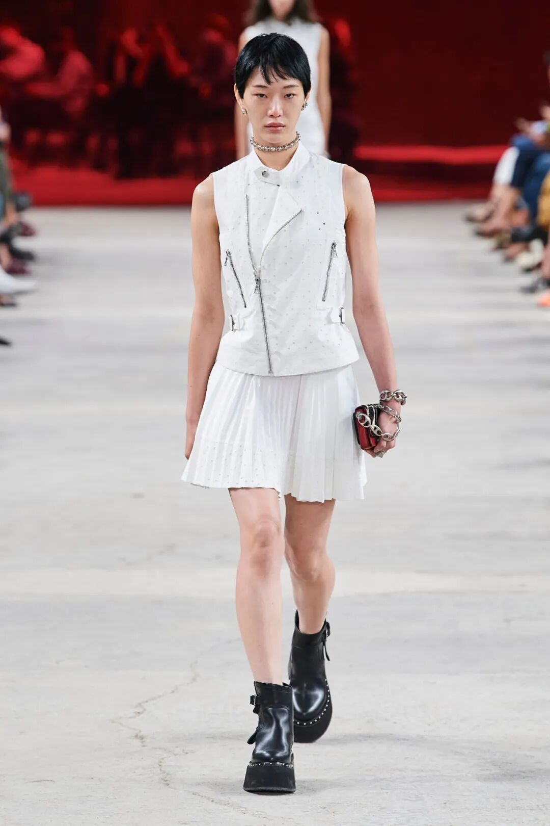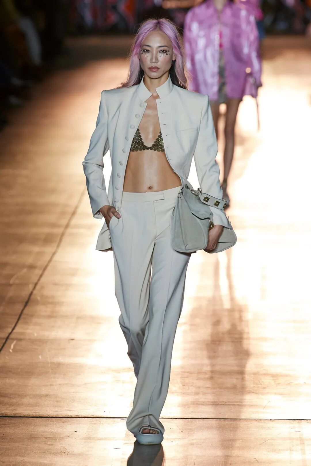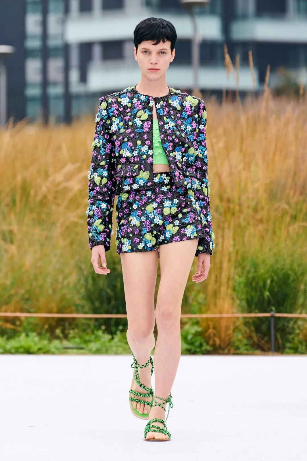 迷你裙和超短裤将成为SS22的必备单品。在Alberta Ferretti的时装秀中,迷你裙与采用相配面料的夹克一同亮相。