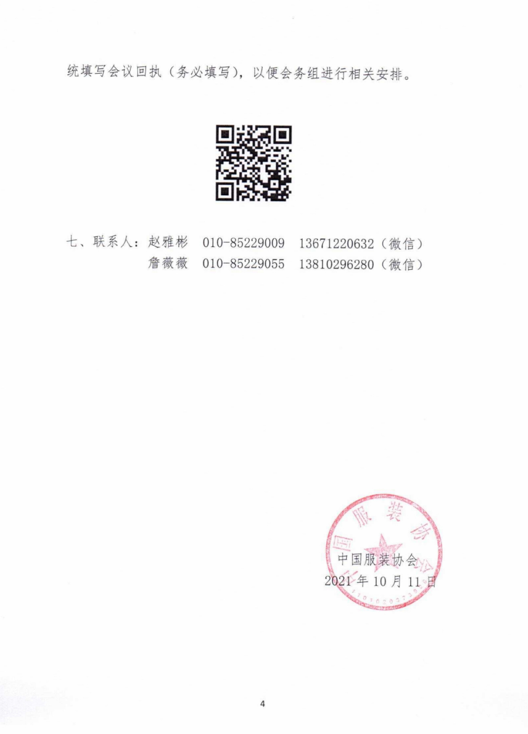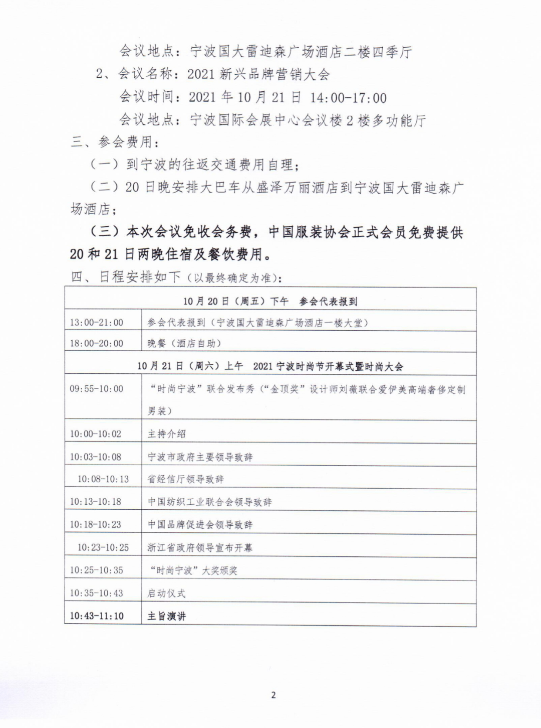 (三)本次会议免收会务费,中国服装协会正式会员免费提供20和21日两晚住宿及餐饮费用。