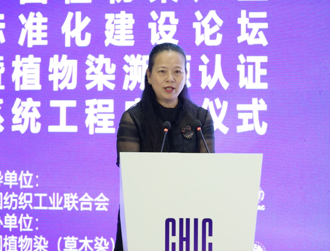 中国纺织工业联合会副会长、中国产业用纺织品行业协会会长、中国纺联标准化技术委员会主任李陵申出席了本次论坛,并在致辞中表示:植物染源于自然,植物染产业符合中国的绿色发展理念、绿色发展方式,植物染产业中的节能降耗技术、再生循环利用技术、污染物减排技术等带来的是成本的进一步优化和长期的稳定收益;植物染产品的绿色属性也有助于打破国外绿色贸易壁垒,并成为影响消费者偏好的重要选择。