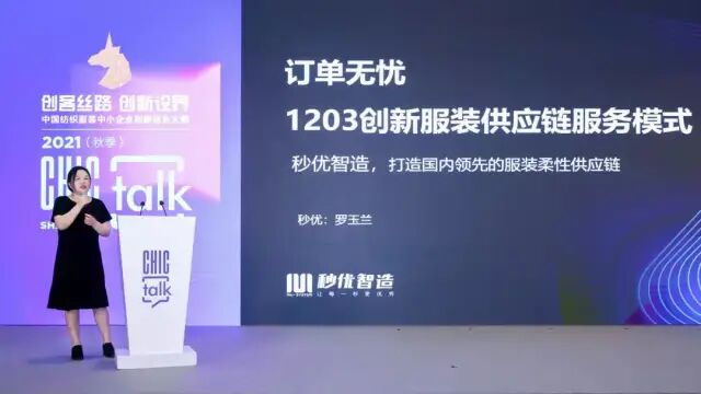 在论坛上,秒优咨询部项目总监罗玉兰做了《订单无忧,1203创新服装供应链服务模式》的主题演讲,她表示服装行业是一个具有挑战性的领域,尤其近年因疫情受到全球经济不确定性以及独特的趋势和产业变化的强烈影响,许多品牌为了应对持续增长的成本效益压力,采取了一系列措施,主要以其核心产品设计、制造和供应链流程中实施可持续创新。其中,实现企业供应链的可持续发展,数字化转型是最重要的途径之一,实现数字化可以帮助企业更快地响应市场趋势和变化,进而完成企业的发展目标。