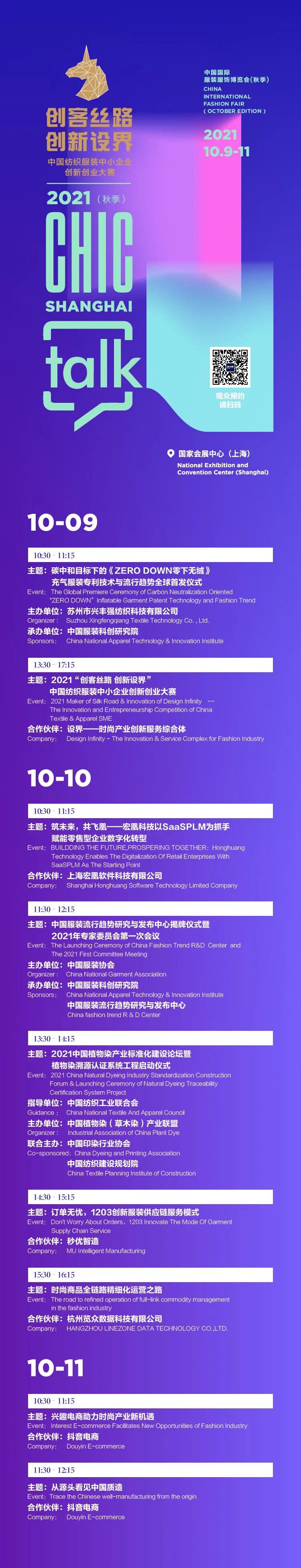 CHIC TALK(商业论坛)一直以来都是展会的重要专业发布平台,为服装行业内先进的技术工具与方法发布平台、有价值的商业解决方案集合平台、有意义的经验与案例分享。