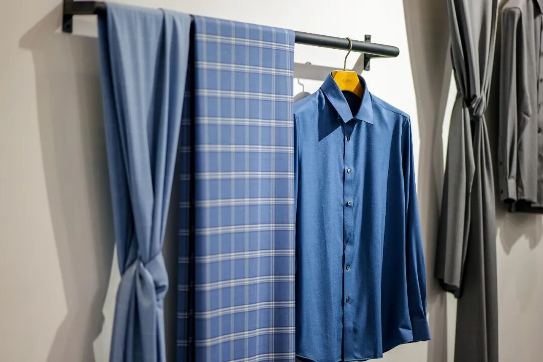 除了这些定制企业在定制展中大露拳脚以外,展区中还能看到许多经营中高档面料的企业。面料产品琳琅满目,能够满足西服、裤子、衬衫、夹克、大衣、礼服等各类服装的定制需求。
