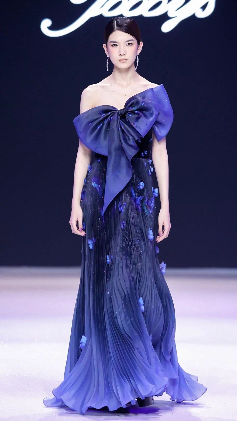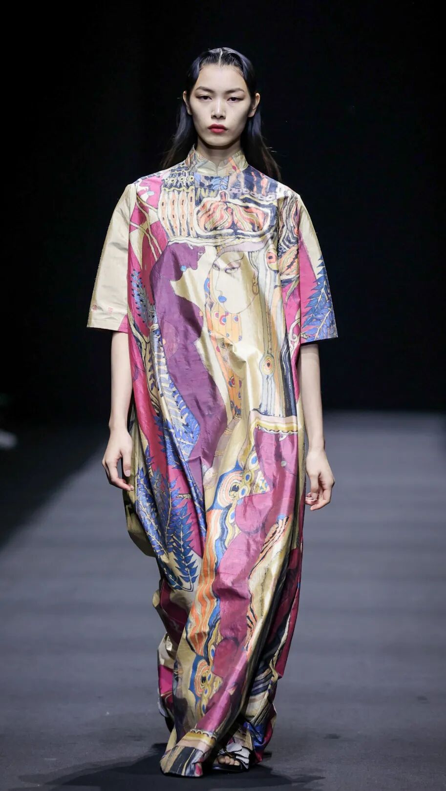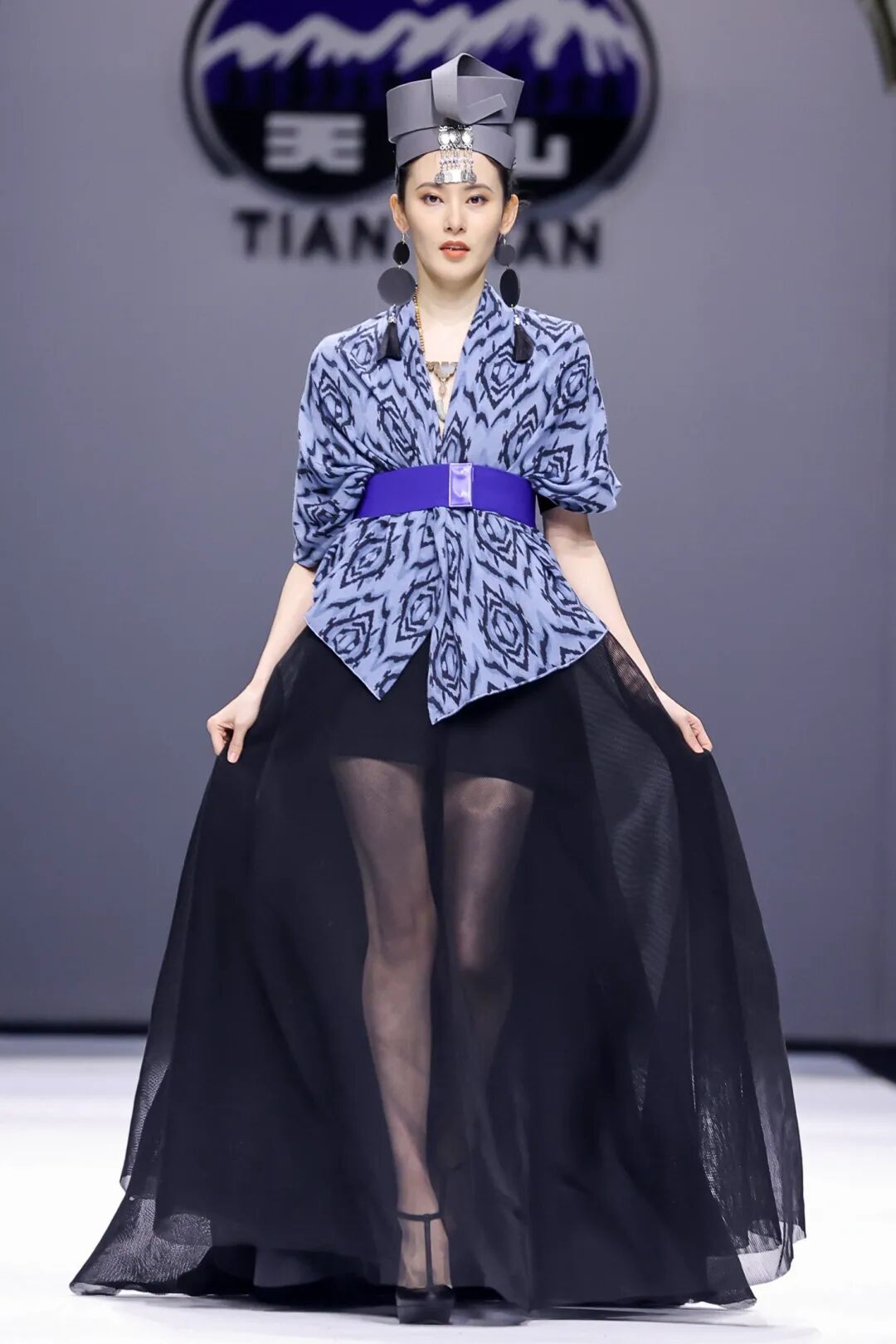 与此同时,本季时装周还呈现出百花齐放的民族文化,如德锦的纳西族、天山的新疆民族、中元素的瑶族、蕃巴秀的藏族,以及金景怡的鄂伦春族文化,以民族文字、风情、图案、习俗,讲述不同民族的故事。