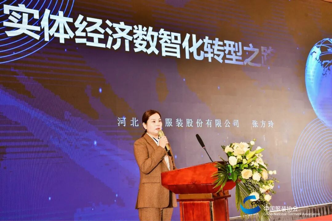 河北格雷服装股份有限公司生产部经理张方玲以格雷为例,同与会代表分享了“实体经济数智化转型之路”的格雷经验。她将数智化转型归纳为运营数智化、产品数智化、生产数智化几个方面,并列举格雷在产品数智化方面的具体做法,如为消费者提供场景智能切换,款式自由设计,材料自由设计、自由搭配等,从企业自身出发,谈到了服装企业数智化转型的必要性。