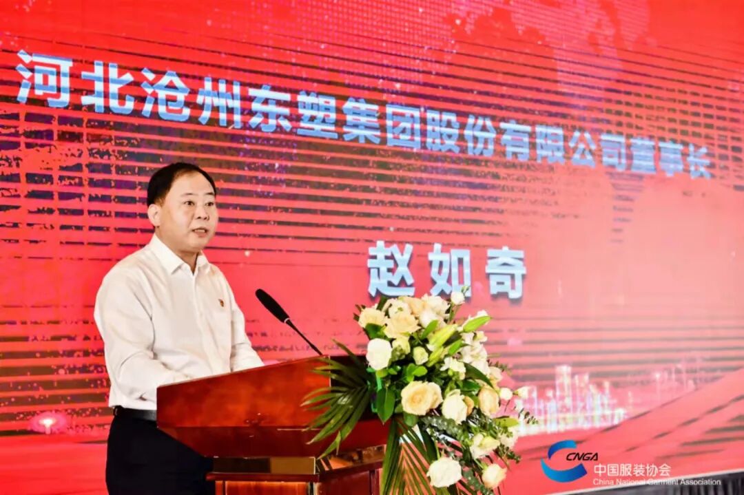 河北沧州东塑集团股份有限公司董事长赵如奇在致辞时介绍称,东塑集团自2014年起,抢抓京津冀协同发展机遇,主动融入国家战略,整体承接北京服装服饰全产业链疏解。7年间,高定位、大投入,按照“移树工程”理念全力打造220万平米的商贸平台和占地3万亩的生产加工平台,目前已经有一万多商户、3000多家企业带动10万多服装人落户沧州,“前店后厂”全产业链的发展格局已经形成。