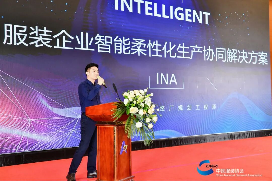 浙江衣拿智能科技股份有限公司新制造项目总监熊未强在会上以“服装企业智能柔性化生产协同解决方案”为主题分享了衣拿在纺织产业数智化解决方案方面的相关做法和案例。他认为服装行业智能制造四大核心是标准化、自动化、数字化和智能化。衣拿目前已经形成智能吊挂系统、物流输送、分拣系统、关键设备、控制系统的开发、设计制造、销售和服务的全方位实施能力,是国内集自主设计、自主研发,为客户量身定制系统软件的高新科技型企业。他还详细分享了IPMS系统平台,并为与会人员呈现了太平鸟、犀牛工厂、赢家时尚等落地案例。