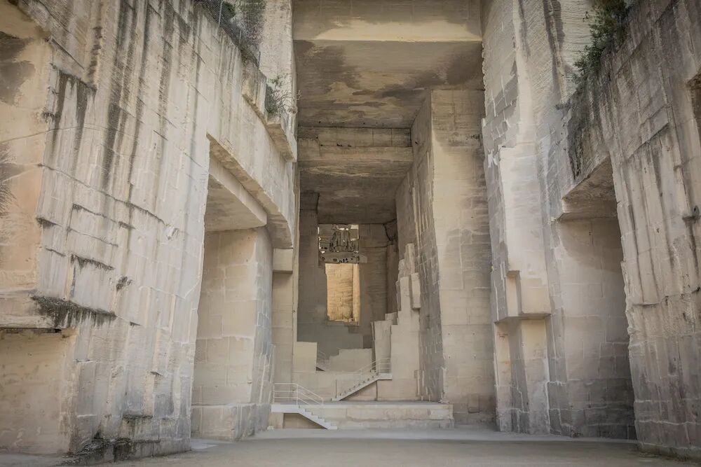 但这个看似破旧的采石场,来头可并不小。上世纪的法国大导演Jean Cocteau的电影《奥菲斯的遗嘱》就在这里取景,后来是各大艺术展览青睐的光影艺术会场。但在没有声光影像展出时,这里显得非常原始,四周都是石灰质巨大墙面。