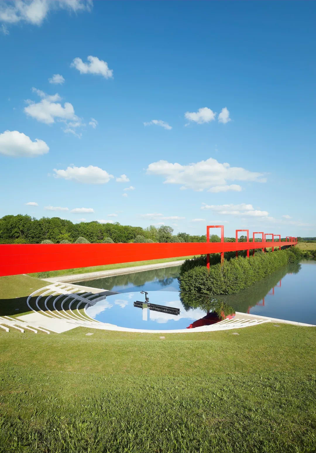 春日是旅行漫游的季节,LV的早春大秀一向以“环球建筑之旅”为招牌,LV 2022早春度假系列来到了巴黎西郊的Axe Majeur, 这里是已故以色列艺术家Dani Karavan 以几何线条触发的无限空间,红桥成为了此次时装秀的秀场。