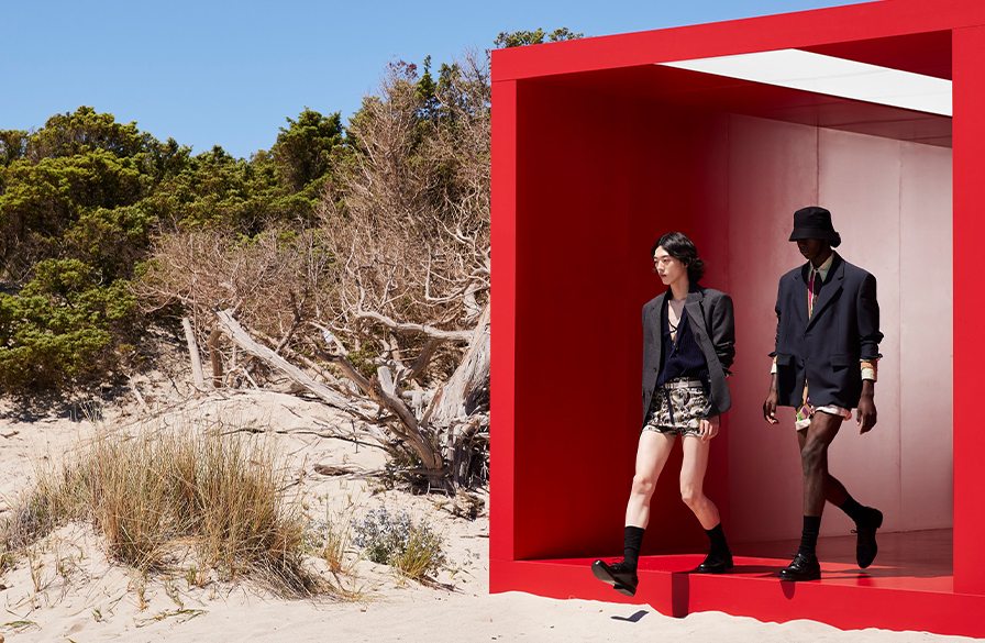Prada 稍早正式发布最新 2022 春夏男装系列大秀,当中糅合艺术与大自然边界打造出蜿蜒的红色隧道,将其搁浅在 Sardinia 岛上的花岗岩巨石沙滩中,塑造出超现实理想中的乌托邦世界,同时也直斥的呼吁人类要保有单纯生活继续挖掘人类本质的重要性,并且希望能藉此唤起如同孩子般的快乐,回忆起儿时去海滩的快乐喜悦。