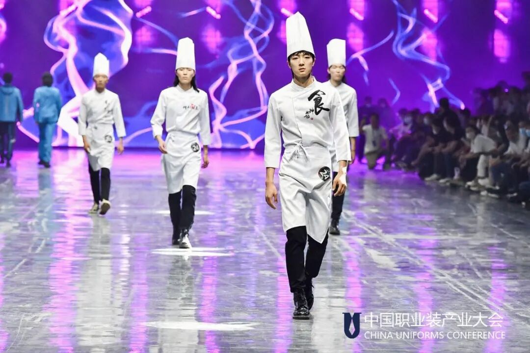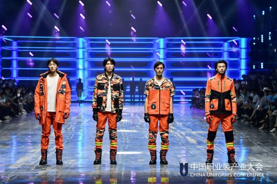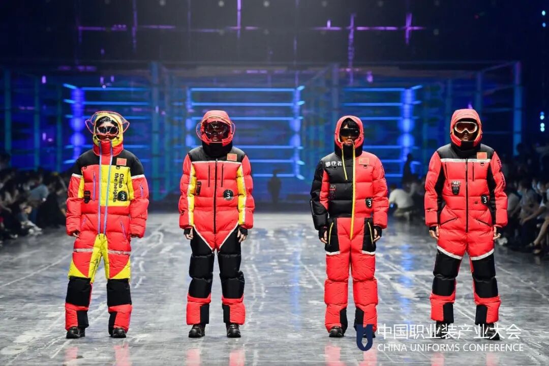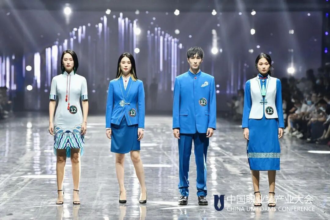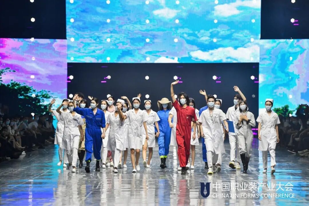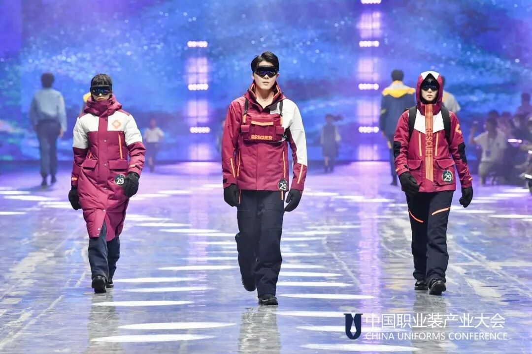 无论是常规的民航、金融、校服等品类,还是新增加的酒店服务类、物流快递类等设计作品,无论是消防、煤炭石油等领域,还是疫情后最热门的医疗防护领域用品,都在设计师的妙笔下走上T台,展现实用性、安全性、功能性、时尚性兼顾的设计理念与方向。特别是此次许多设计作品都结合了中国传统文化,无论是纹样、颜色以及灵感来源,都呈现出了具有“中国特色”的职业新装。
