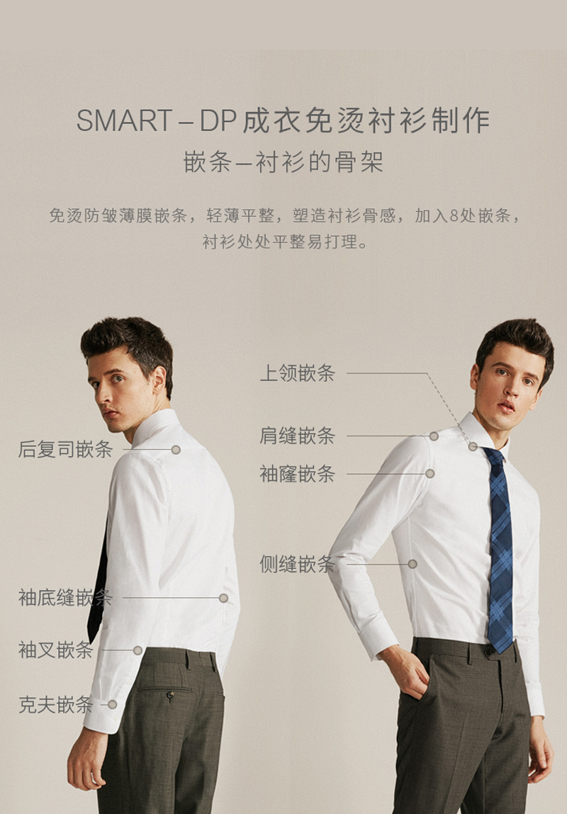 即为经典,必有独特之处。「十如仕」的产品由珍贵的新疆长绒棉制作而成,商务正装衬衫拥有多达61个尺码,利用免烫技术及胶条工艺,使衣物挺括的同时更好打理,为忙碌的生活做减法。