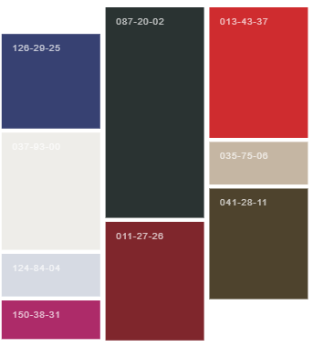 应用建议:高纯度的调色板是经典款式或街头服装的理想之选。采用深色与粉蜡色作为过渡,则可呈现更明亮的视觉效果。该色盘也适合打造过渡季款式。