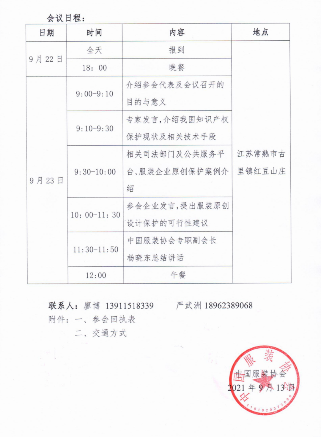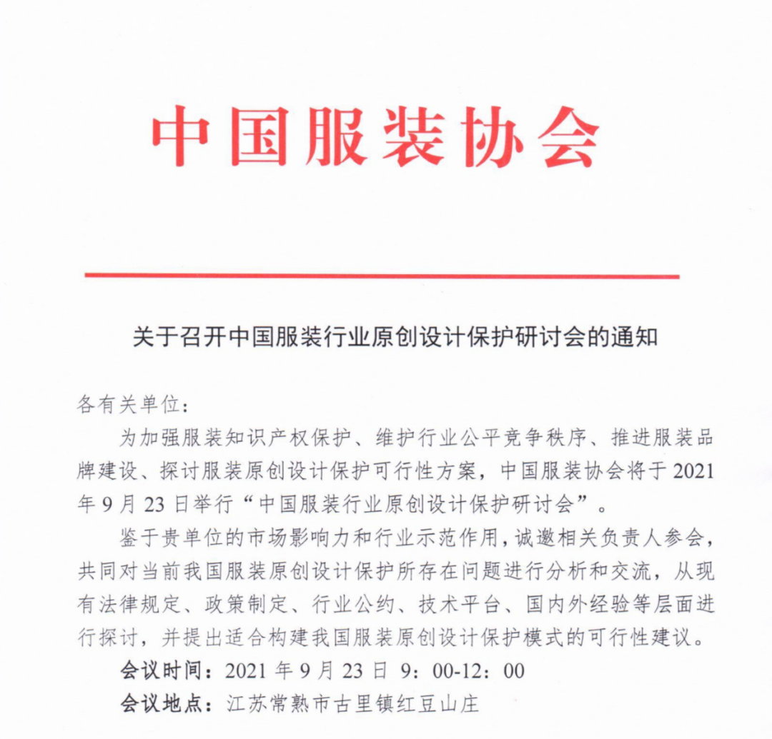 为加强服装知识产权保护、维护行业公平竞争秩序、推进服装品牌建设、探讨服装原创设计保护可行性方案,中国服装协会将于2021年9月23日举行“中国服装行业原创设计保护研讨会”。
