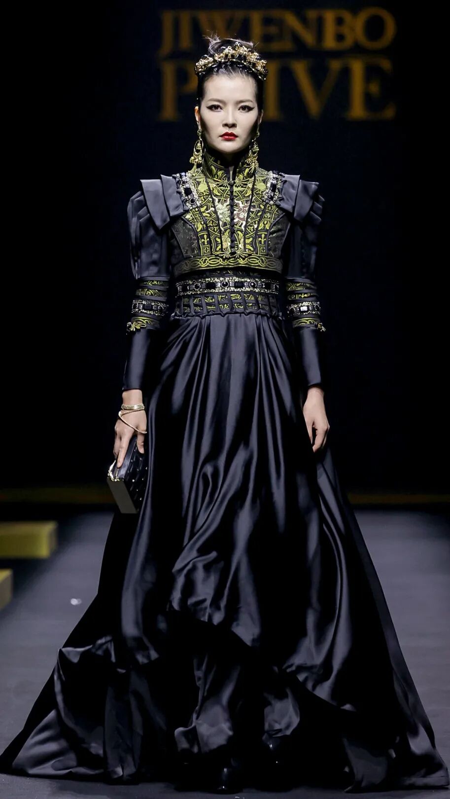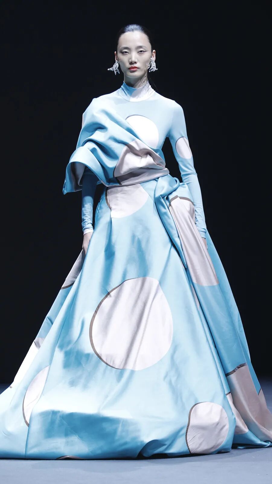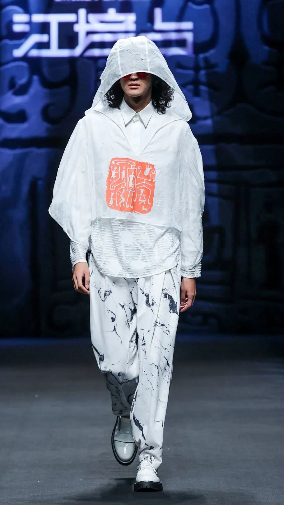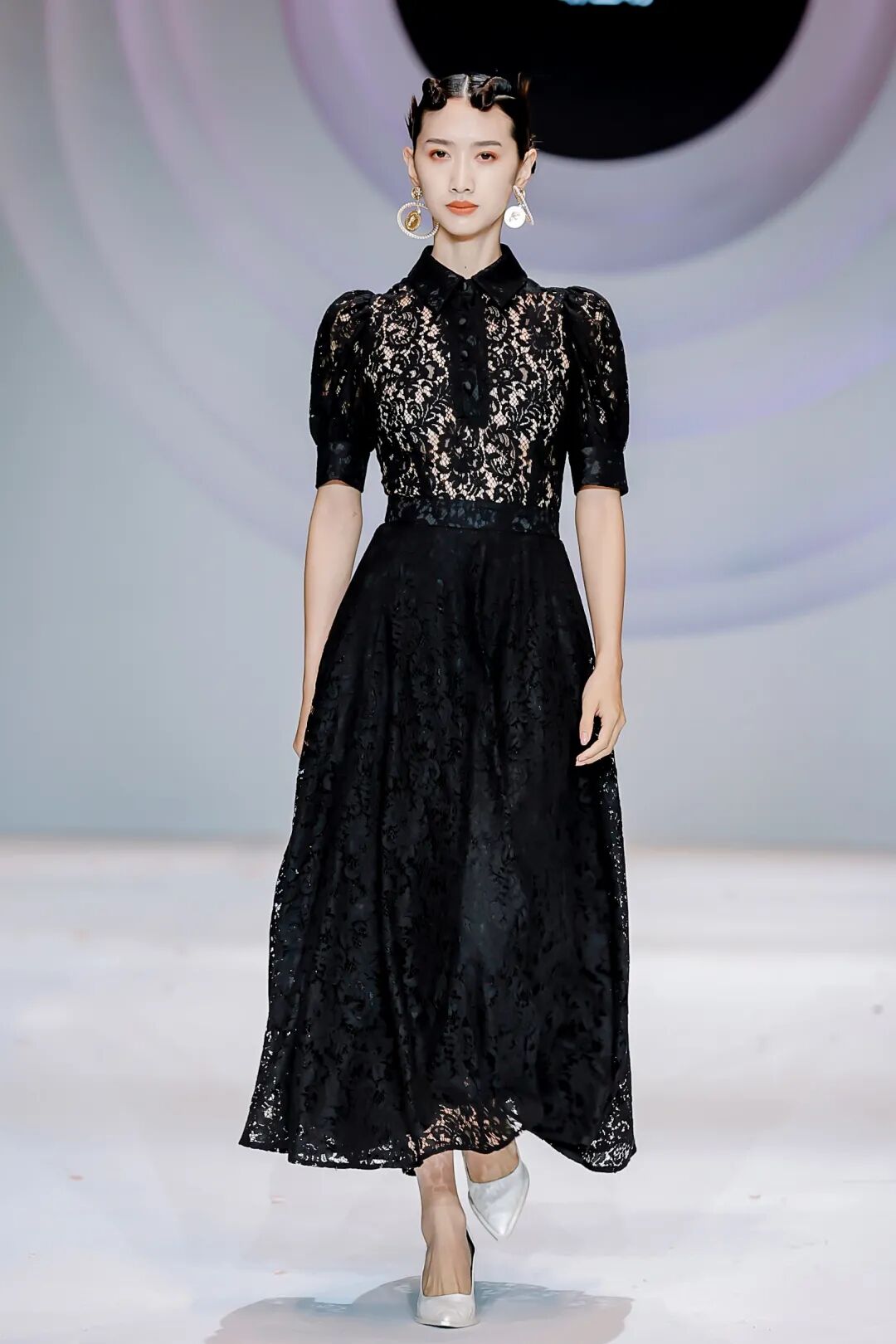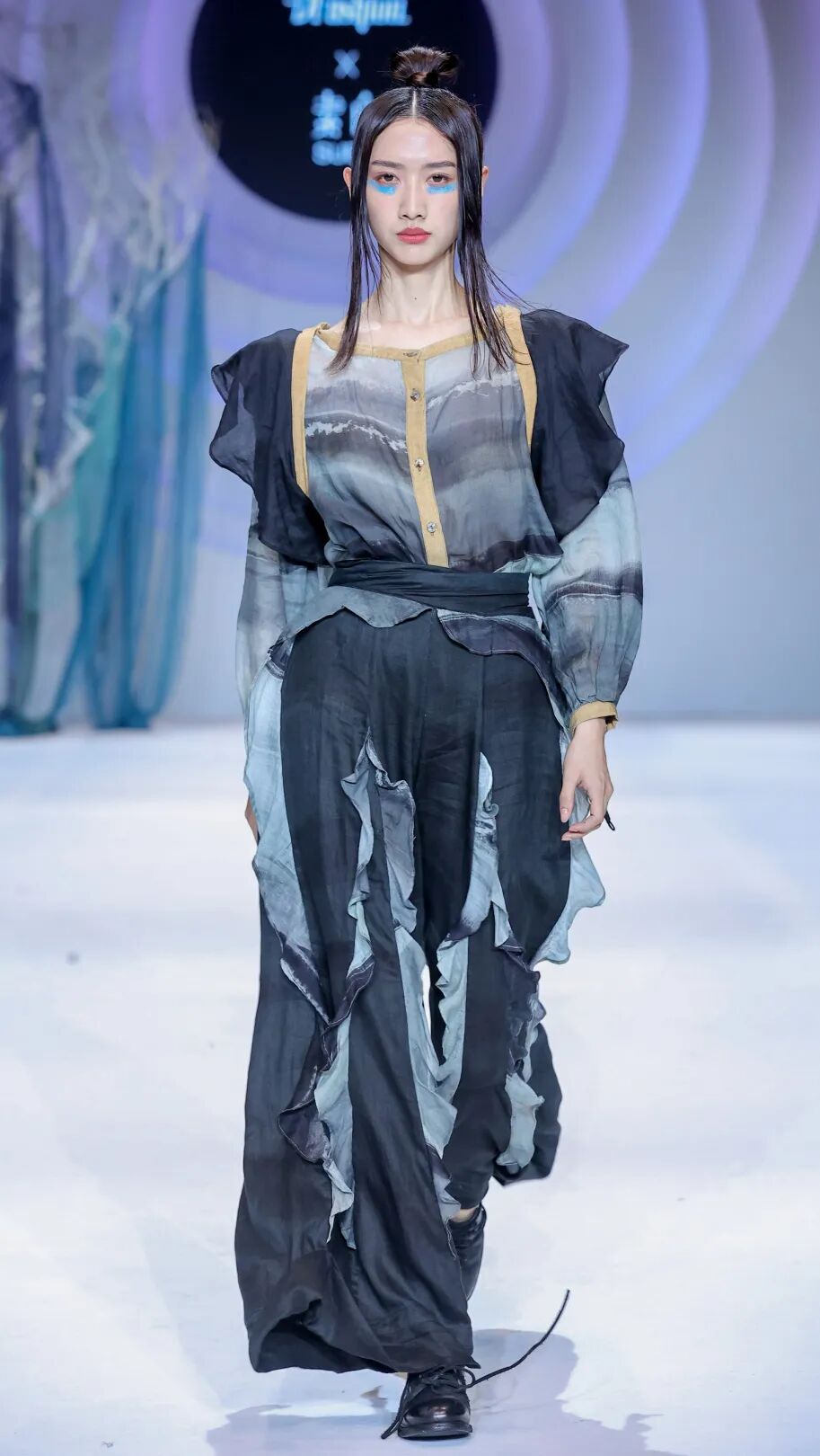 设计师计文波从唐卡中提取灵感,采用提花、定位花、刺绣、活性印染等高精工艺阐述敦煌文化,携其品牌JIWENBO PRIVE呈现了一场包罗东方根骨与西方情韵的大秀;设计师丁洁从《山海经》中获取面料设计灵感,将蛇纹图腾进行时尚演练,将真丝与特种面料碰撞,传递D.MARTINA QUEEN品牌“尚衣下裳”的职场女装新风尚;设计师兰天巧妙地将服饰与建筑学中榫卯结构结合,流畅自然的廓形塑造、细腻的结构雕琢、舒适的面料选择,为高级时装品牌MoHanYun赋予外柔内刚的女性气质;中元素则取源岭南瑶族风情,把瑶族的图腾文化元素与青年审美相结合,展示一种年轻态的“潮文化”。