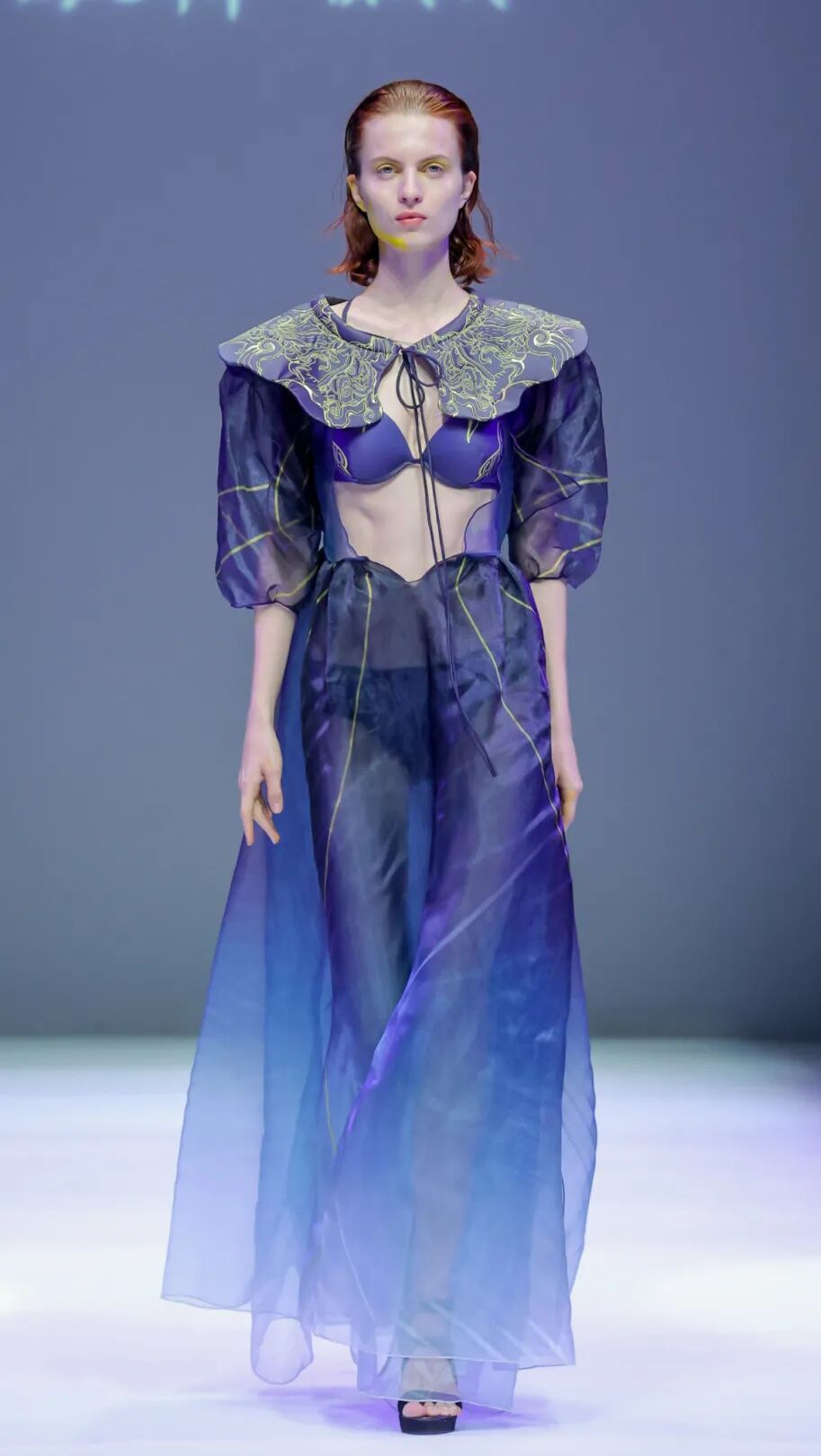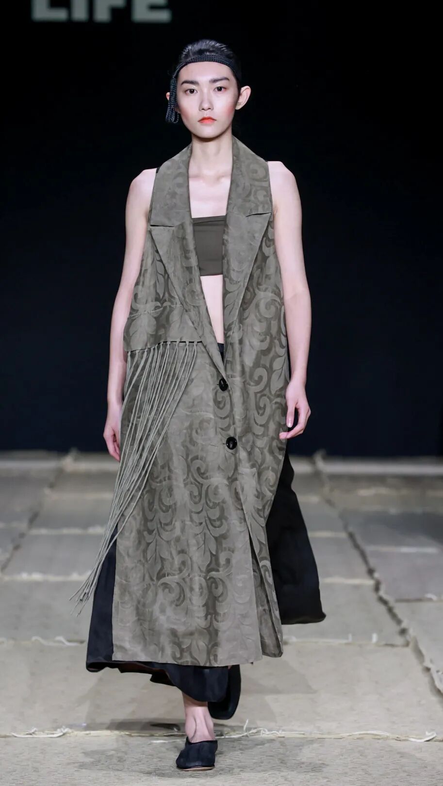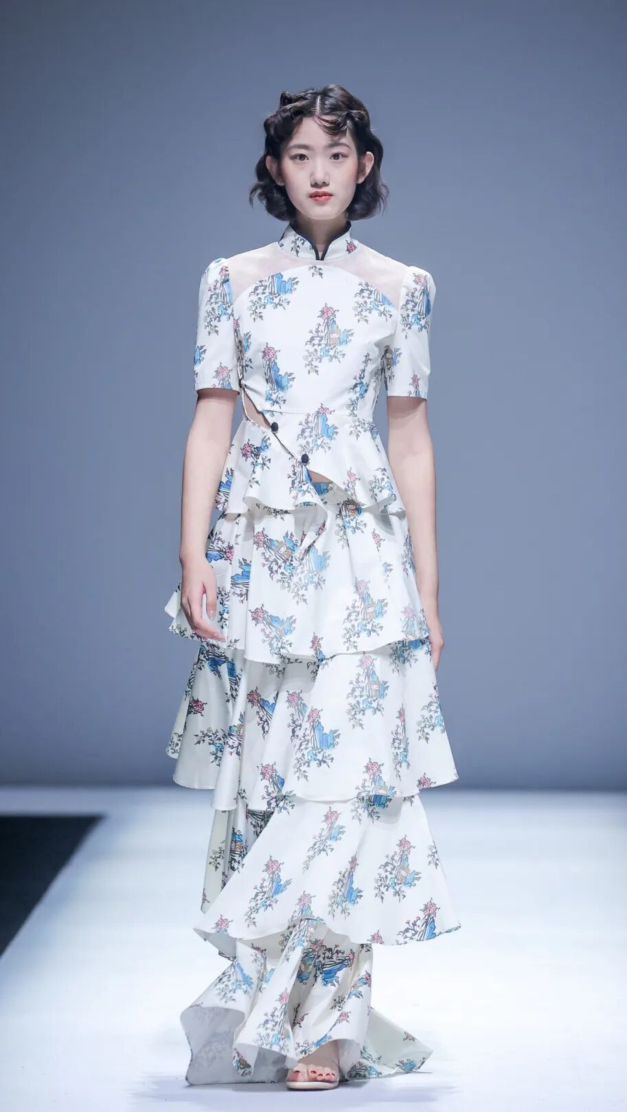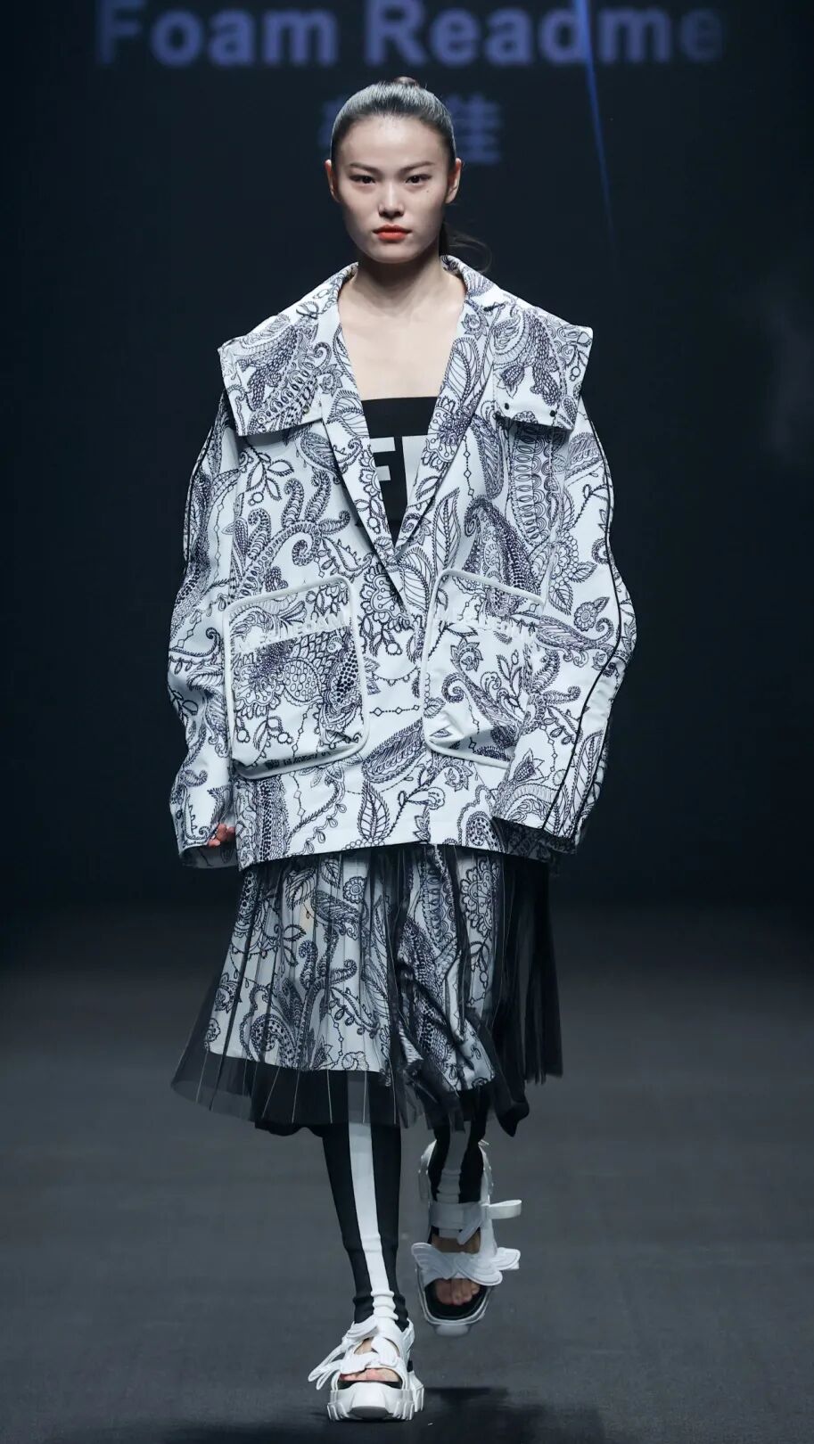 设计师计文波从唐卡中提取灵感,采用提花、定位花、刺绣、活性印染等高精工艺阐述敦煌文化,携其品牌JIWENBO PRIVE呈现了一场包罗东方根骨与西方情韵的大秀;设计师丁洁从《山海经》中获取面料设计灵感,将蛇纹图腾进行时尚演练,将真丝与特种面料碰撞,传递D.MARTINA QUEEN品牌“尚衣下裳”的职场女装新风尚;设计师兰天巧妙地将服饰与建筑学中榫卯结构结合,流畅自然的廓形塑造、细腻的结构雕琢、舒适的面料选择,为高级时装品牌MoHanYun赋予外柔内刚的女性气质;中元素则取源岭南瑶族风情,把瑶族的图腾文化元素与青年审美相结合,展示一种年轻态的“潮文化”。
