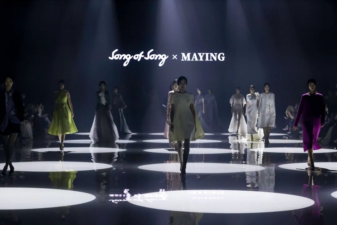一方面,楚和天物&楚和觉色、九五丝御、CHICCO MAO、MZSH、XUNRUO熏若、JOOOYS、瓒兒ZANER、丹尼斯王DENNIS WANG、SAVIOUR OF SOUL、爱致AZLOOK、赫拉公主HERA PRINCESS、莱霓莎、点零一POINT ZERO ONE、KEYONE、KILLWINNER、APOUS百汇馆等成熟设计师品牌纷纷实力亮相。表明面料选择和品牌调性上主打中国风、设计风格具有“网感”的品牌市场需求较大。另一方面,由10+3 SHOWROOM青年设计师基地计划选送的新锐品牌,也是每季DHUB设计汇的“保留曲目”。恰逢本季10+3 SHOWROOM青年设计师基地计划迎来第十届,CHENG CHENG、今日青年FACEON LAB、Pastoral Poetry、Esa Liang、Celf Identity、NILDET、CALICO COLLECTION、MoHanYun、另是NIMBUSLIN、半录BLLU、由此YOUCI等新势力品牌的集体呈现,恰恰也是潮力潮趋势在一个十年轮回后的焕新。和网络时代一起成长的他们不再含蓄,积极捕捉商业热点、探索新兴销售模式,在渠道拓展方面勇于尝新。
