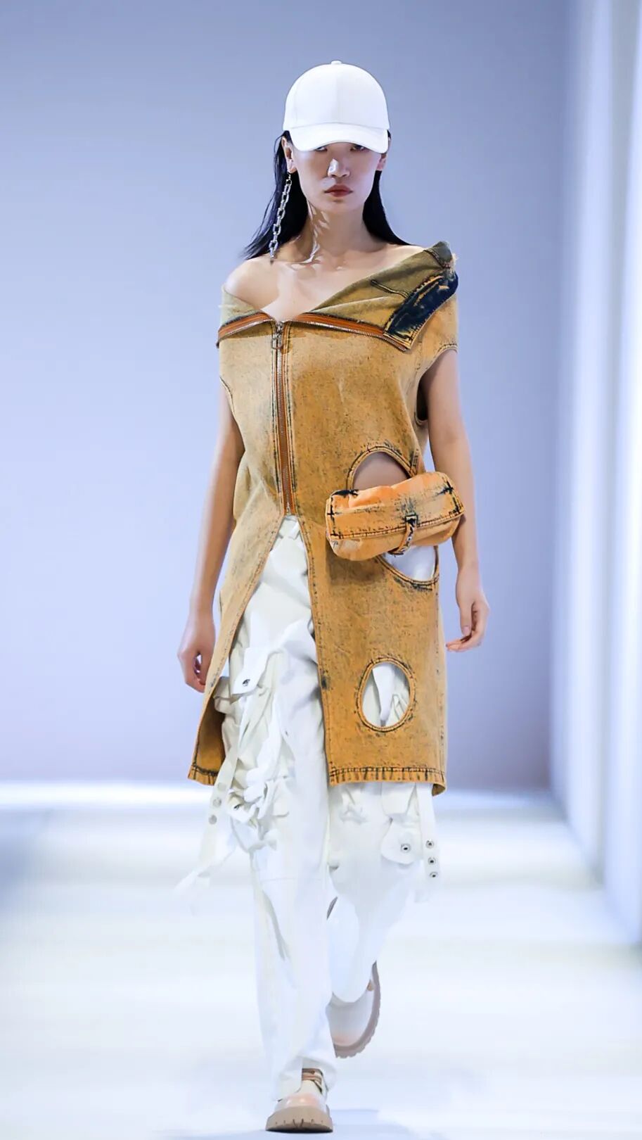 近年,可持续时尚已经从议题成为共识、从倡议成为实践,并开始进入收成期。本季时装周上,可持续时尚被落实到设计、制作等过程中,如JUMPER ZHANG、捡子、WANMAY、天山、德锦等大多数品牌均采用棉、麻、真丝、羊绒等天然材质制作服装;楚和听香、兼持、JOOOYS、DEMAINZ等品牌则采用草木染、矿物染等天然染色方法以减少制作过程产生的污染;DAMOWANG、三六一度、弥加J11、D.MARTINA QUEEN等品牌则应用到再生纤维材质,从回收利用的角度践行可持续;“变废为宝”也是品牌践行可持续的有效途径,如旗艺、MACKZHENG、NILDET等品牌将库存材料再利用,均在一定程度上减少浪费。Celf Identity除了采用环保面料、再生面料,也翻出“白胚库存”进行改造立裁。