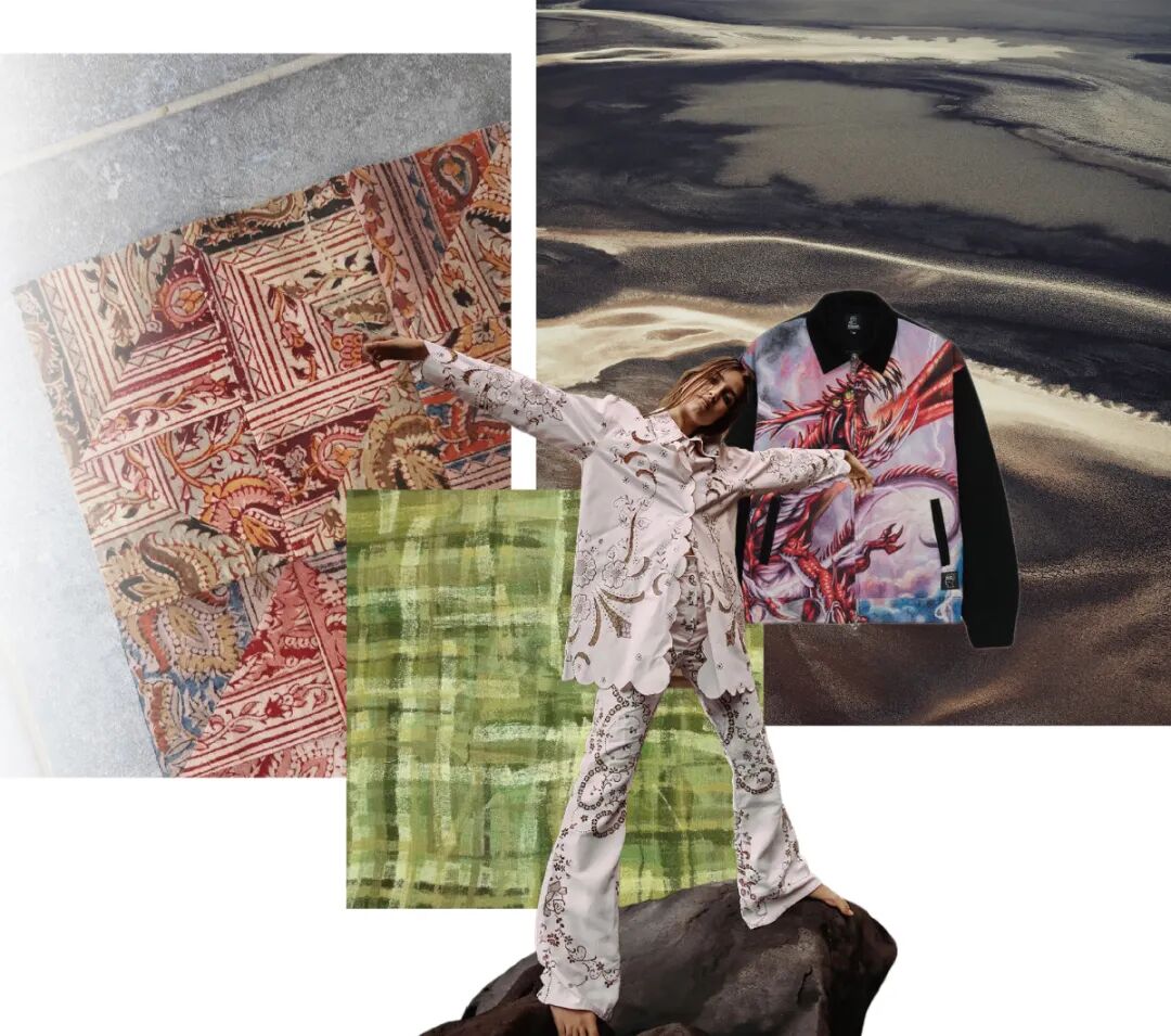 富有年代感的质朴元素成为灵感,源于消费者对于熟悉的图案风格更为青睐。复古的经典复刻、传统纹样的多样化升级以及手工艺的崛起,为图案设计融入了更为多元的生活质感。经典的腰果花纹样、繁复精致的欧洲古典图案,或以创新色彩重新着色,或搭配几何线条元素,焕发新的生机。具有手工艺感的花型拼接和原生氛围感的梭织条格图案,也在秋冬季节传达出更加日常化的复古美学。