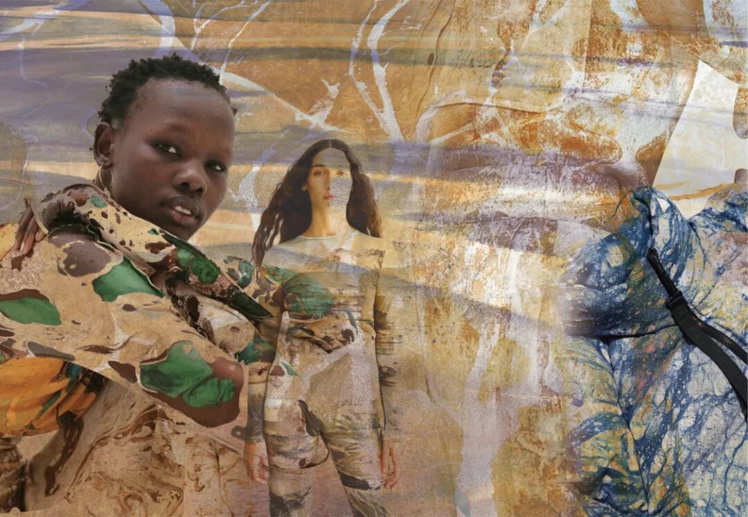 户外运动的兴起使得人们更加关注自然生态,随着消费者的环境保护意识不断增强,原生地质纹理和微观自然景观有了更为充足的应用和发展空间。大理石纹样、原始地质效果图案以及抽象化的有机纹样营造出非城市空间的神秘之感。同时,还可以对迷彩图案和扎染工艺进行升级设计,抽象化演绎实现自然纹理的创意再造,亦可结合动物纹样,使得图案设计充满自然力量。
