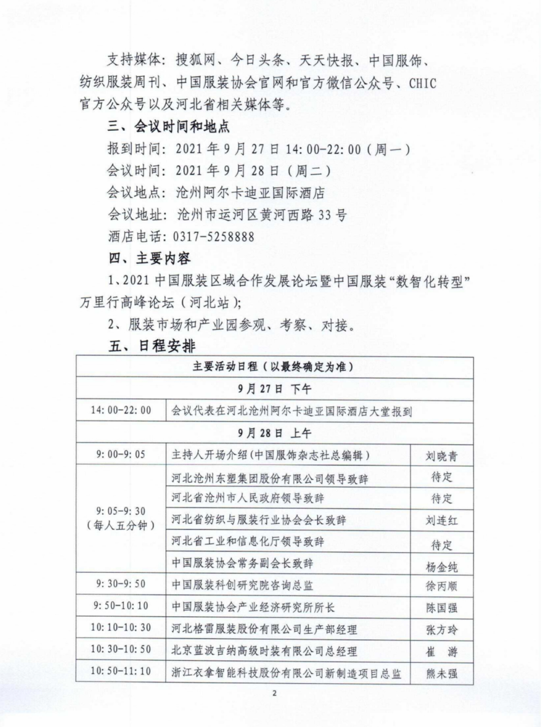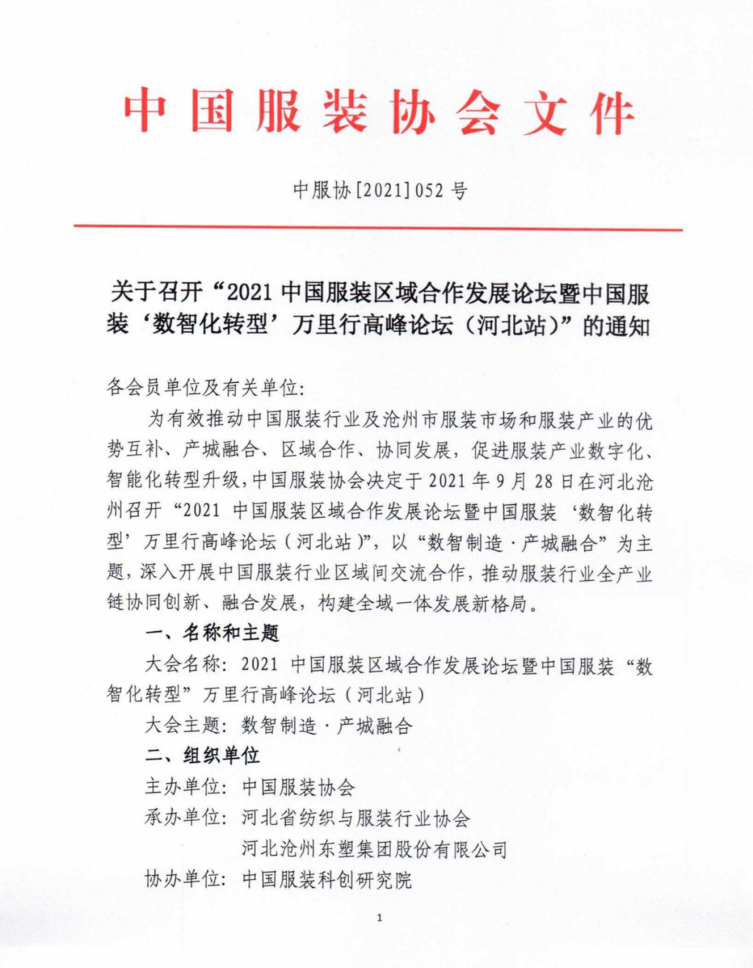 1、2021中国服装区域合作发展论坛暨中国服装“数智化转型”万里行高峰论坛(河北站);