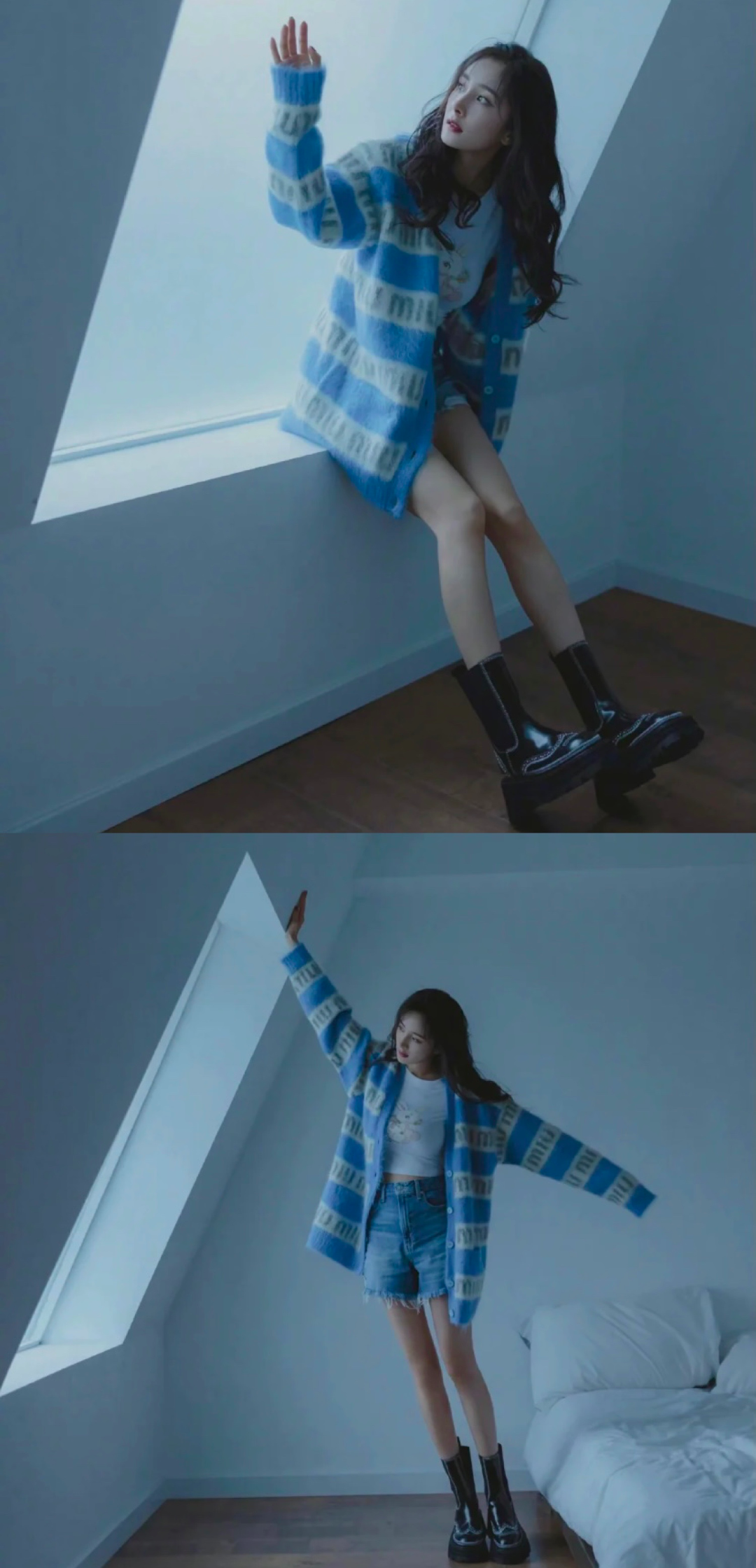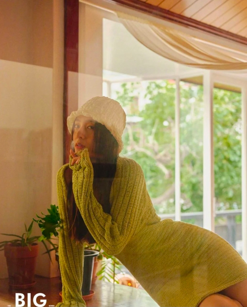还有郑秀晶Krystal 在BIGISSUE七月刊中所穿的绿色针织裙,清冷、妩媚又带一丝少女的内敛与沉静。
