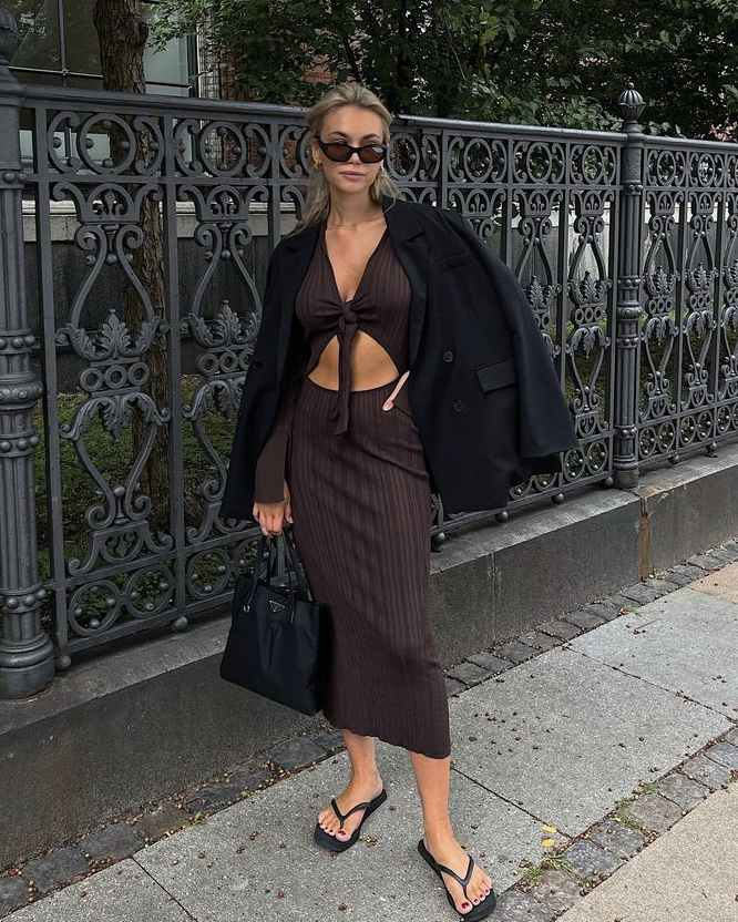 对于针织裙装来说真的是浅色温婉,深色高级,不仅好看又非常百搭,就算是到了深秋也还是可以外套风衣再美一个季节。