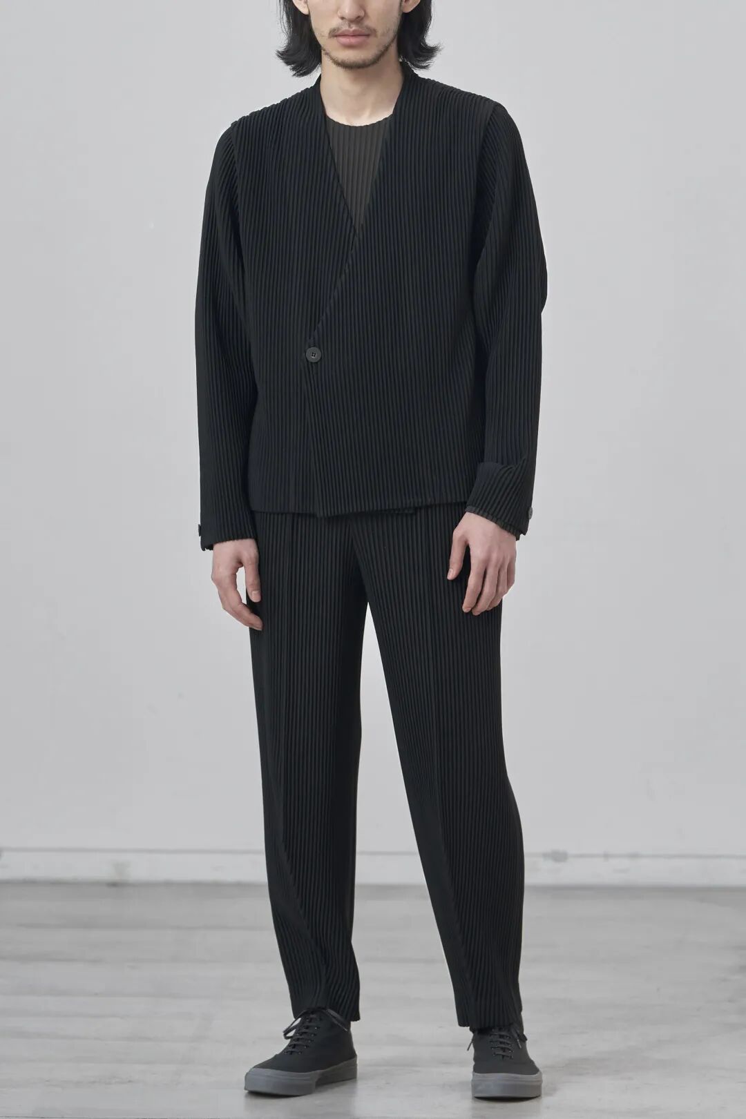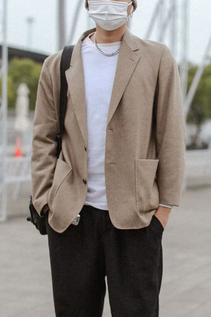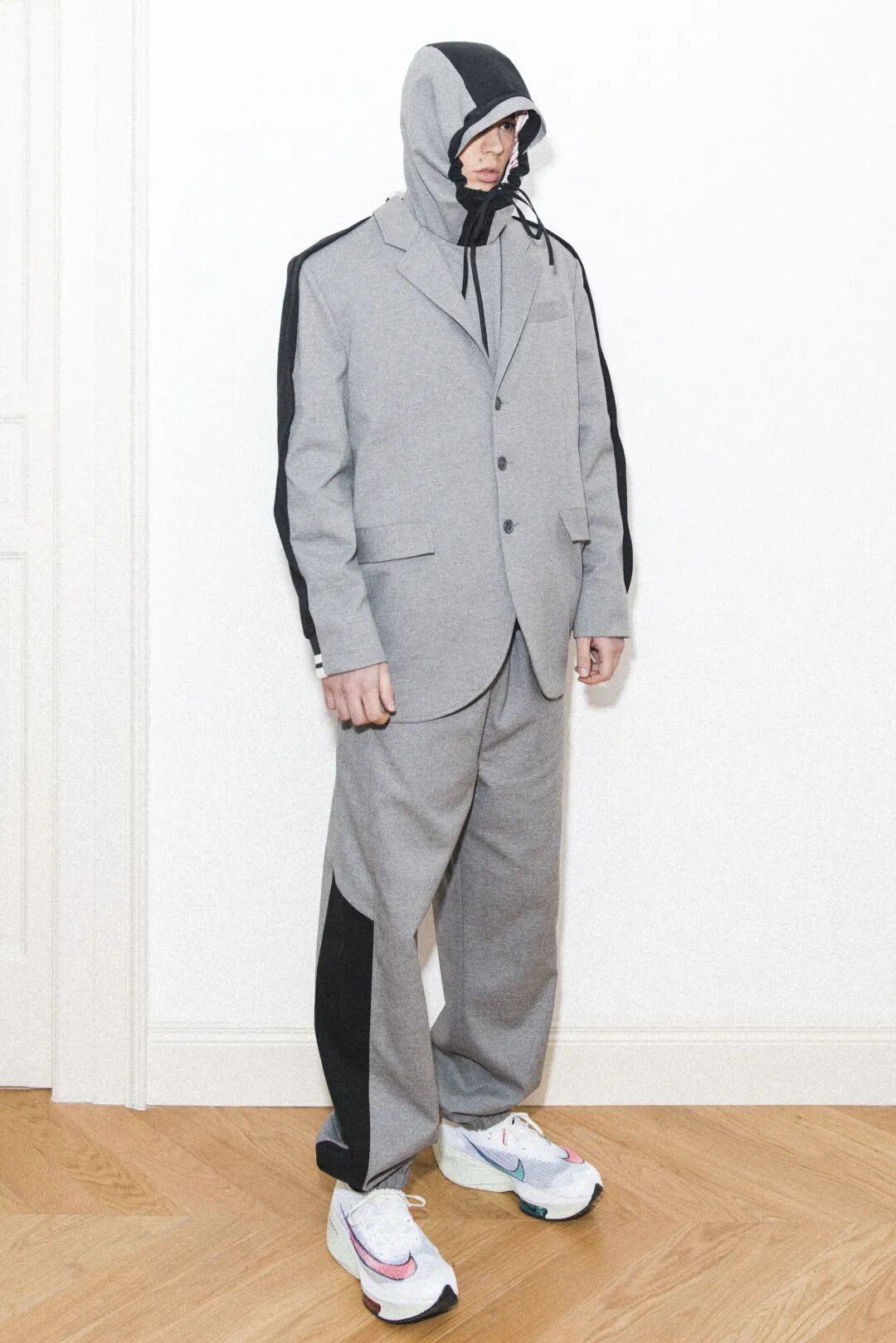 加入拼接设计,赋予三扣西服未来风之感,搭配稍带运动感的造型更为和谐。