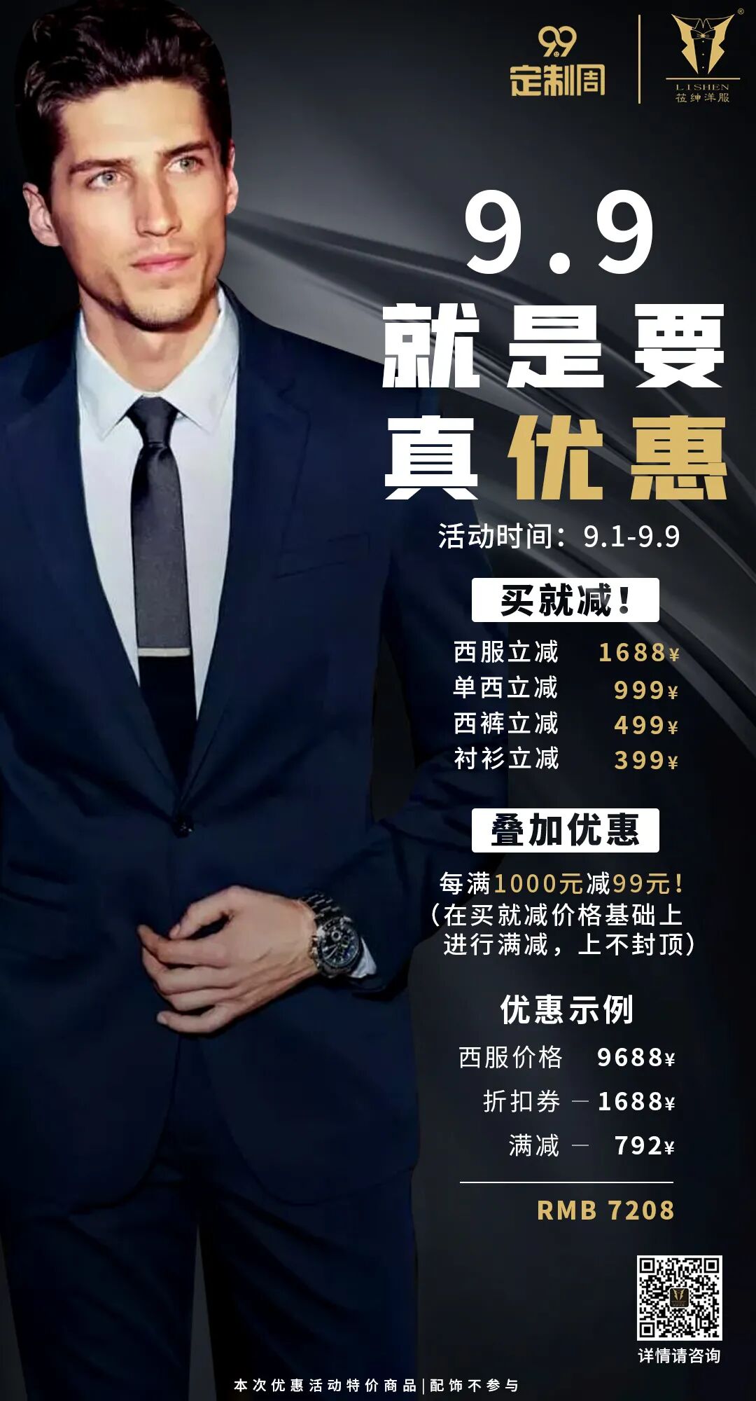 为了保证“9.9定制周”购物节活动的顺利开展,参与的定制零售企业和个体定制店针对自己的产品定位,策划了一系列丰富的促销优惠活动。协会官微将定期对这些定制零售企业和个体定制店所策划的产品优惠活动方案进行系列报道,敬请持续关注!