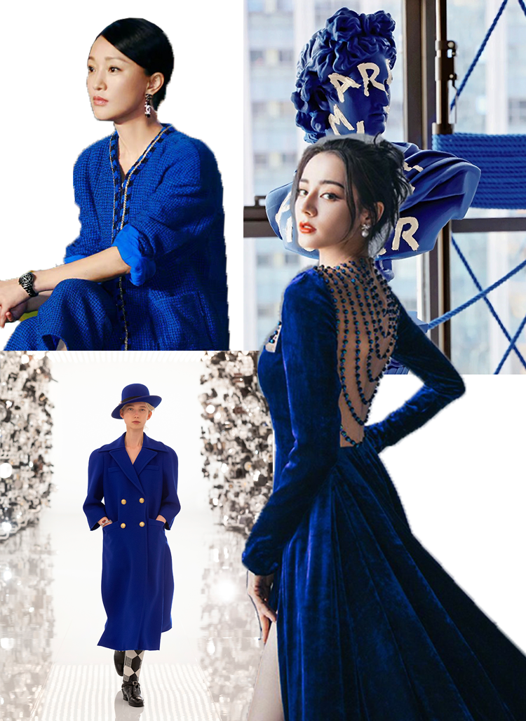 还有周迅前不久这一身克莱因蓝Chanel套装和迪丽热巴的克莱因蓝丝绒露背裙,知性、优雅又非常的脱俗。