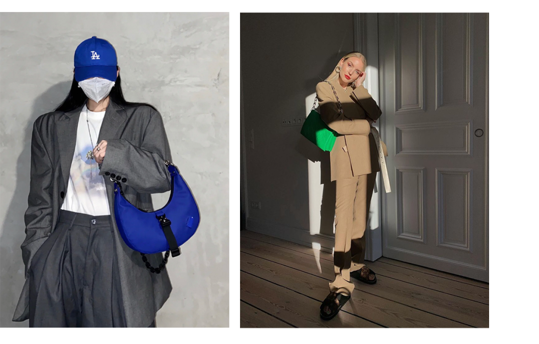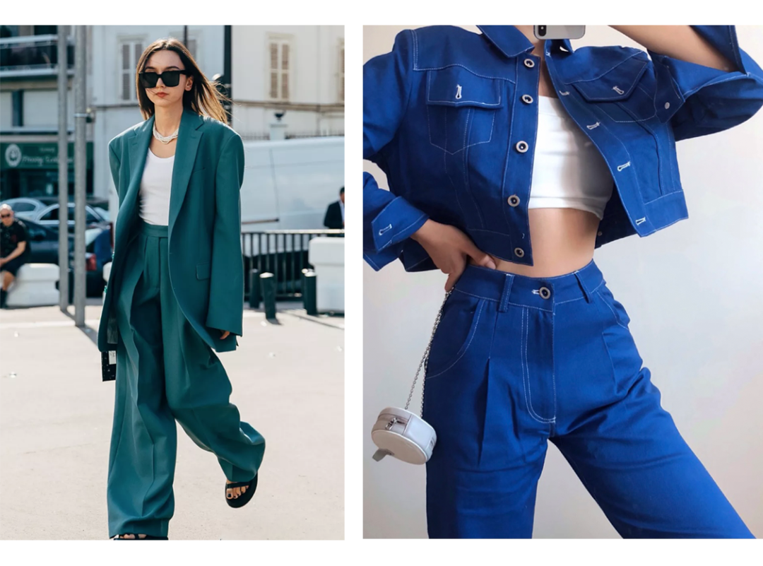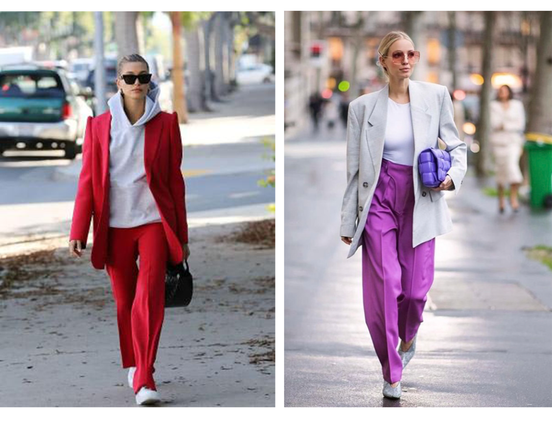 虽然这些颜色时髦亮眼,但也是需要一点点搭配技巧的,素人如果将这些大面积的堆叠上身很容易导致视觉冲击过于强烈,反而失去了高级感。可以叠加白色、灰色、黑色中和亮色带来的视觉冲击或者小面积,运用高饱和色进行搭配、点缀来突出整体穿搭。
