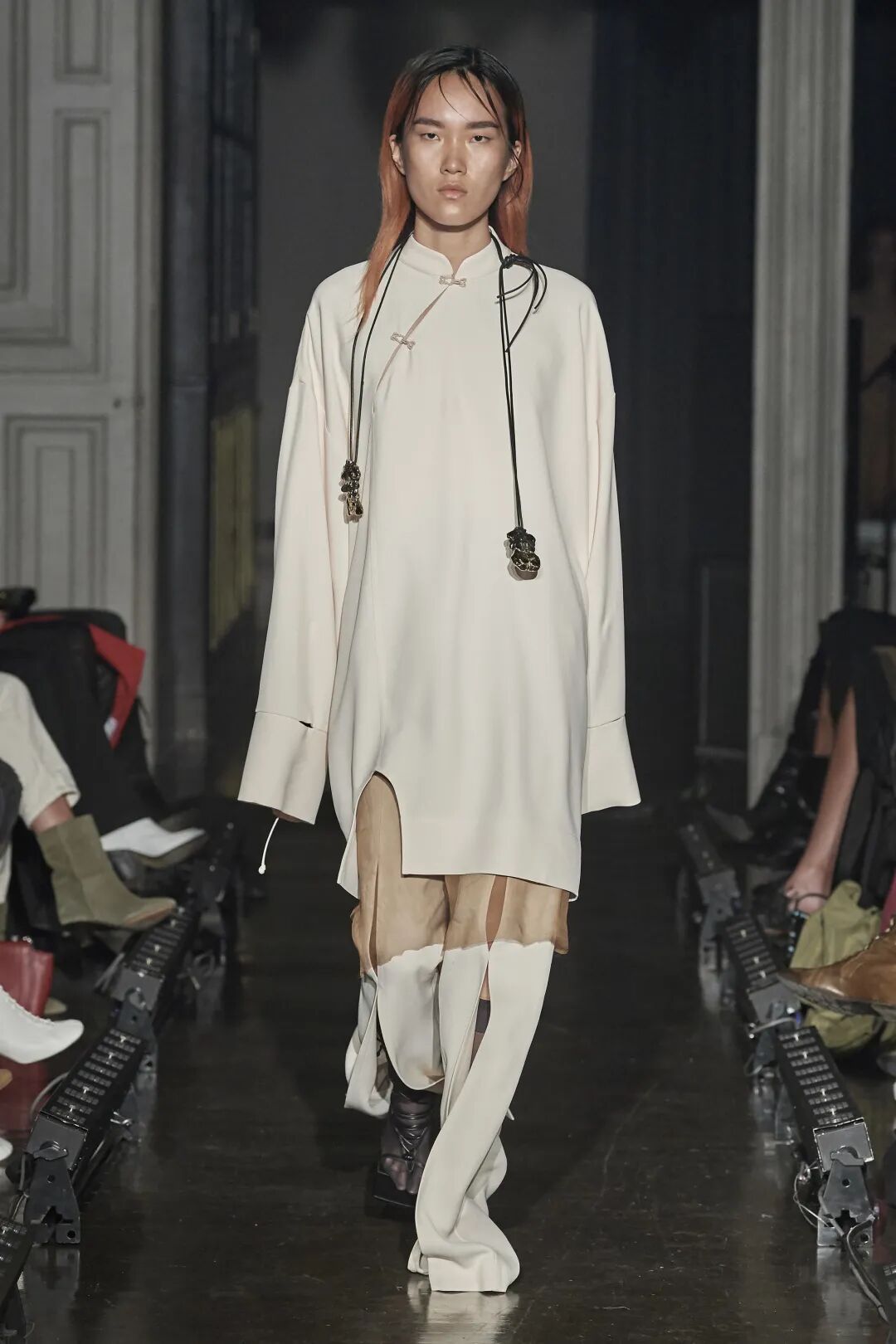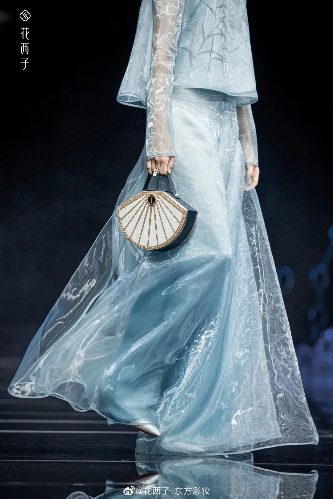迎合汉服热潮还原古典装束,并以现代极简升级造型的时尚感,延续上一季刚柔并济的东方韵味。