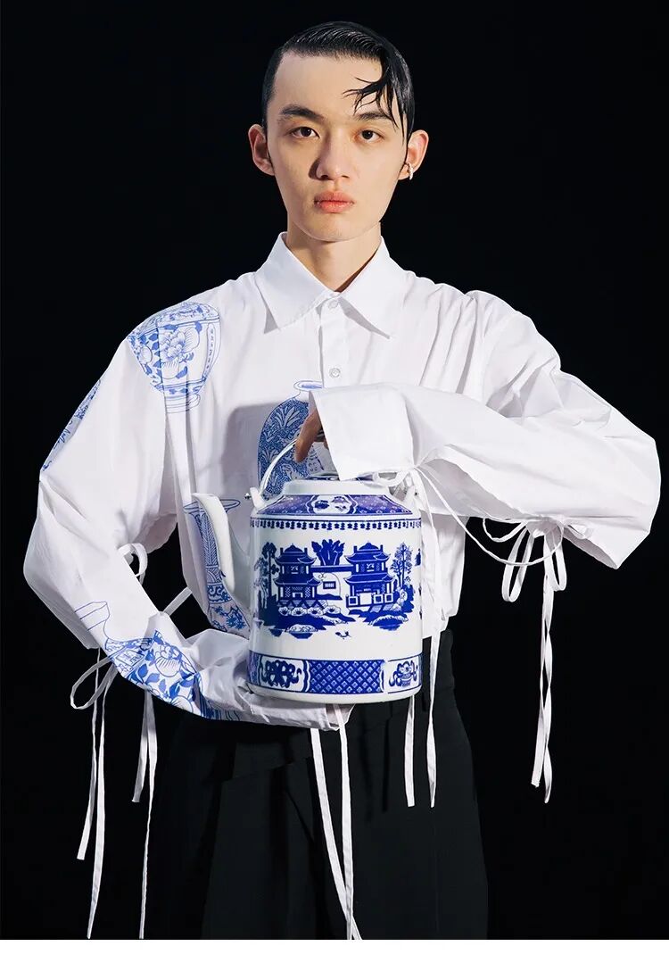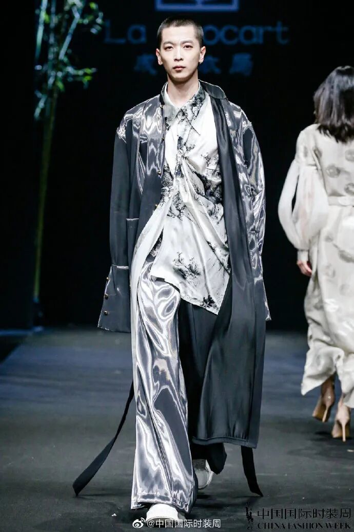 延续上一季的“佛系”装扮主题,迎合汉服热潮,以富有传统意境和东方美学的图案和肌理,呈现现代、简约、内敛的男性气质。