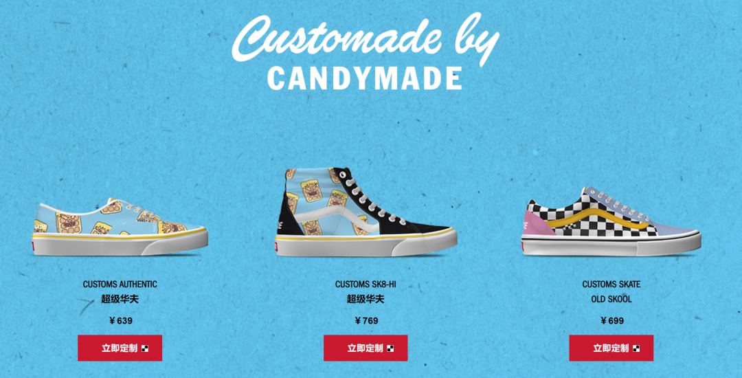 滑板文化到90年代步入低谷期,为了让品牌能持续获得关注,Vans除了赞助体育赛事、建滑板公园等,最重要一个举措就是在1995年赞助全美最大的巡回音乐节 Warped Tour(下图,已于2018年停办)。这也是Vans 首次连接潮流音乐文化圈。多年来,Vans 品牌通过与SXSW西南偏南等更多音乐节或是 Beatles(披头士)等音乐人/团体、乃至伯克利音乐学院合作,已将音乐深深地植入了品牌的文化内涵。此外,Vans多年来也通过一连串高频联名合作,将街头风潮延伸至年轻人喜爱的多种文化类型。Vans 最早的联名合作可追溯至90年代与迪士尼《星球大战》联名,但早期更广为人知的联名应该是在1996年,合作对象正是2020年被VF集团以21亿美元收于同一门下的 Supreme。2003年,高端支线Vault by Vans 正式推出,让跨界联名玩法更多样。除了时尚品牌之外,Vans也开始与音乐家、艺术家、知名IP联名。据 Vans 爱好者网站统计,Vans在2020年共推出了108 个联名系列,平均每个月9次联名,约每3天就上新一个联名款。Vans 自创立开始就倡导创意精神,鼓励自我表达。1966 年创始人 Paul Van Doren 在加州开设第一家店铺起,Vans便开始提供定制鞋服务。2004年,Vans在官网上推出个性定制板块(Vans Customs),可供消费者选用上百种颜色和图案打造专属经典一脚蹬鞋款。同年10月,Old Skool鞋款也加入了个性定制的行列。2019年,Vans Customs自由定制鞋平台再度升级,推出“传图定制”功能,用户只需登陆Vans官网,在Customs自由定制鞋专区选择喜欢鞋款,上传专属图案,再对鞋款部件加以设计配合,就能把独特创意展示在鞋款上。2019年9月,Vans 还举办了首届全球定制鞋大赛,优胜者可赢取2.5万美元大奖。Vans也将在次年量产并在店铺发售其设计作品;同时优胜者还能获得体验南加州Vans总部之旅,并有机会以个人的名义向慈善机构捐赠10万美元。除了注重消费者的创意展现,Vans也多次通过艺术家表达品牌理念。比如2017年,Vans推出了“全球创意企划”活动,遴选了30位创意人士,如插画师、音乐人、雕塑师等,为每个人录制了一个1分钟的视频,传播他们的创意理念,也顺势传播Vans的定制服务。上图:Vans“全球创意企划”的艺术家之一,来自成都的插画师Candy上图:插画师Candy的定制作品。用户可以直接下单,或在Candy的作品基础上进一步定制。2021年6月,Vans 位于上海南京东路的品牌体验中心正式开业。这是Vans在亚洲单店面积最大的沉浸式体验空间。店内有电子购物大屏用来检索商品,还配置有AR射击游戏《鞋盒大作战》和滑板模拟体感游戏《他们叫我别滑板》,让购物过程更有乐趣。2021年春节前夕,Vans推出了基于AR技术的朋友圈广告“伸爪扫一扫”活动。参与活动可以获得一系列奖励,最大的奖品是Vans的限定联名鞋款。据Vans官方发布的数据,这一朋友圈广告首发五小时内, 就带来了朋友圈1570多万的曝光。相较欧美,中国滑板运动起步较晚,市场还有待成熟。但近年来随着滑板纳入奥运项目,街潮崛起,中国的滑板文化热度也越来越高。2009年,Vans 品牌入华第二年,就将世界滑板日带到了中国,在上海和北京组织了中国首个世界滑板日活动。到2019年,Vans 在中国的世界滑板日活动已从最初的几个城市、几百名滑手扩大至50个城市 63 家滑板店、超过 20000 名滑手共同参与。2017年,Vans 将全球唯一认证的公园地形滑板巡回锦标赛——职业公园滑板赛首次带到中国,设立上海赛站。2019年,Vans 还联合其它机构打造首个中国大学生专属滑板赛事“范大滑”,并在上海、广州、成都、北京举办了四城五站的比赛。上图:“范大滑”总决赛现场。比赛地点为北京工业大学此外,2018年开始,Vans 还与本土滑板店和滑板教学机构联合推出“Vans滑板学校”项目,旨在让更多有滑板兴趣的小白用户入门体验。目前Vans滑板学校已登陆上海、北京、广州、武汉、成都等城市。可见,无论产品和营销活动如何多元,Vans在世界各地都在始终强化自己的根基——滑板文化。