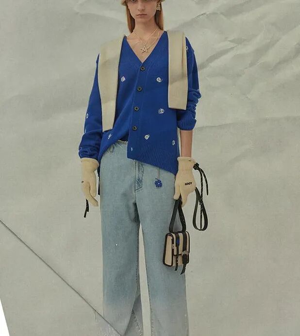 经典夏日度假风格以浪漫清新的方式重回视野,轻复古元素的装点赋予海边浪慢风格以疗愈感。净水蓝、氧气薄荷绿、玻璃蓝等,如同透明的水彩画般澄澈,迸发盎然生机与活力。Ader Error打破传统印象,浅蓝色渐变牛仔裤,搭配素色针织衫,清爽造型跃然眼前。MSGM将传统塑身衣与浪漫的拖地荷叶边连衣裙融为一身,使得着装者宛如刚从海边游泳上岸的少女。花朵纹样、超大波点、变形格纹、拼贴图案……新粉彩带来的现代海洋气息如微风轻拂,焕然灵动。