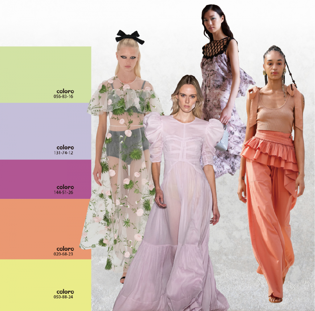 夏日情怀触发自由悸动,以体察细微的生活美学与世界重逢,唤醒感官活力和多变的时尚本质。立体感蕾丝、半透薄纱、丝质面料、超细针织……籍由柔光粉蜡色营造出宜人欢愉的轻松氛围。MSGM改良基本的T恤款式,加长的版型及超长流苏细节,令裤装上繁华似锦的纹样若隐若现的显露出来,年轻态浪漫一览无遗。Acne Studios以扎染效果的晕染图案打造唯美的女性气质。实用性与梦幻感相结合,开启一个兼具时尚力量和生活乐趣的美丽新世界。