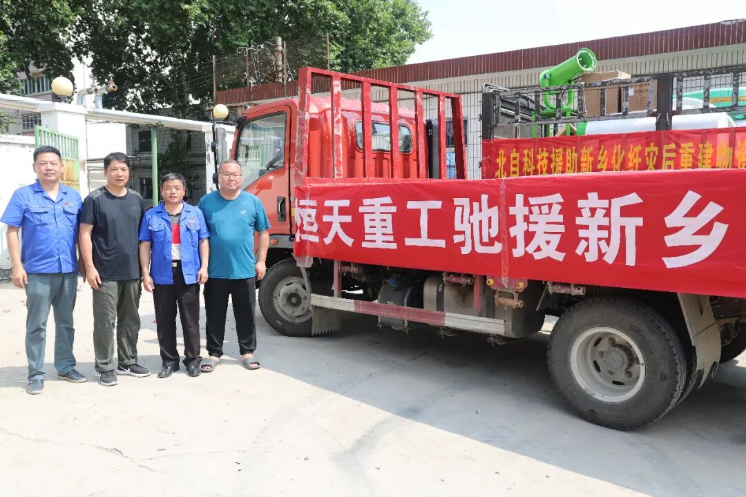 7月27日,恒天重工党委委派公司党委委员、工会副主席、党委工作部部长郭富勤等同志,带着捐赠的10台10千瓦发电机,驱车紧急驰援新乡化纤,帮助新乡化纤缓解厂区内涝问题,助力新乡化纤尽快实现复工复产。新乡白鹭集团党委副书记张春雷、新乡化纤副总经理张家启代表新乡化纤接收物资并向恒天重工的关心和支援表示衷心感谢。