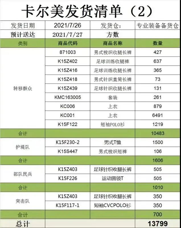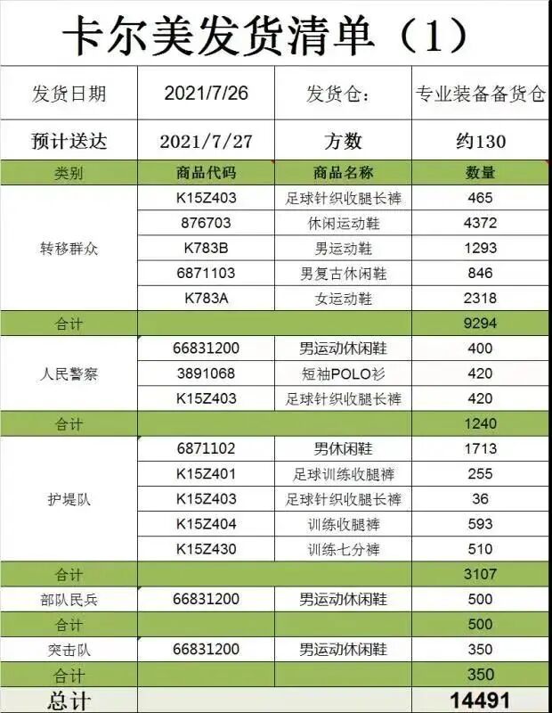 福建晋江卡尔美体育用品有限公司捐赠价值1000万元的物资支持前线防汛。